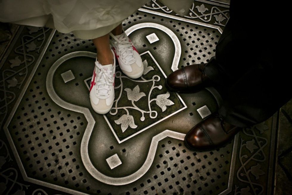 At the Conservatory, guests sat down in front of the Victorian structure to watch the couple tie the knot, and in some cases, tie it for them. “We didn’t want really formal vows, but we did want some kind of tradition,” says Alison. “We asked people close to us to tie a ribbon around our wrists and say a few words.”