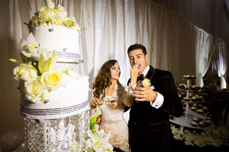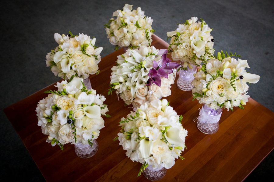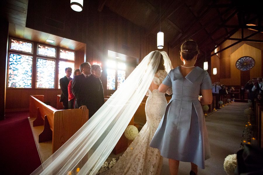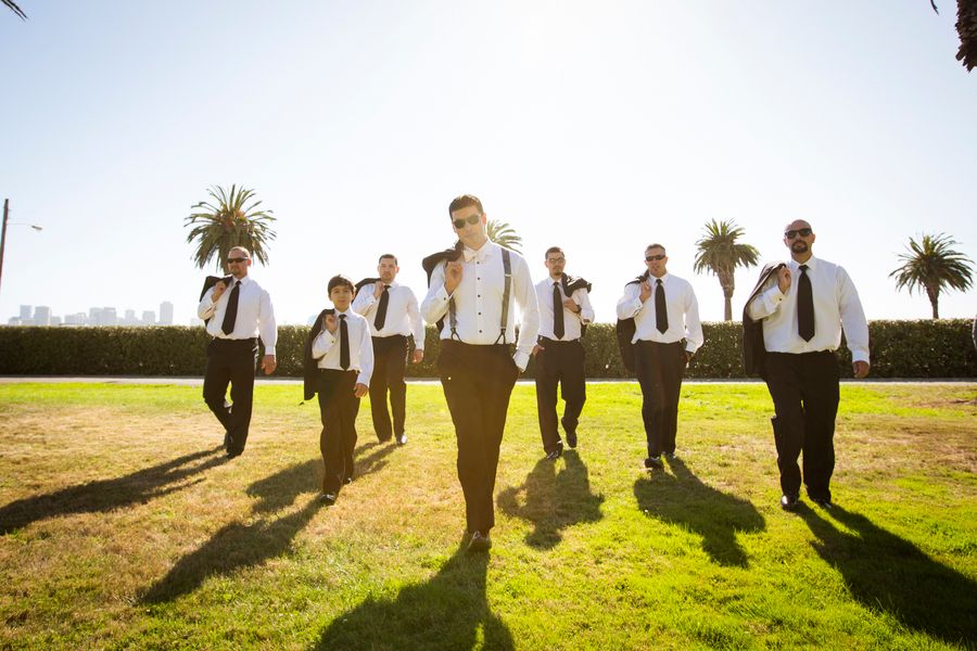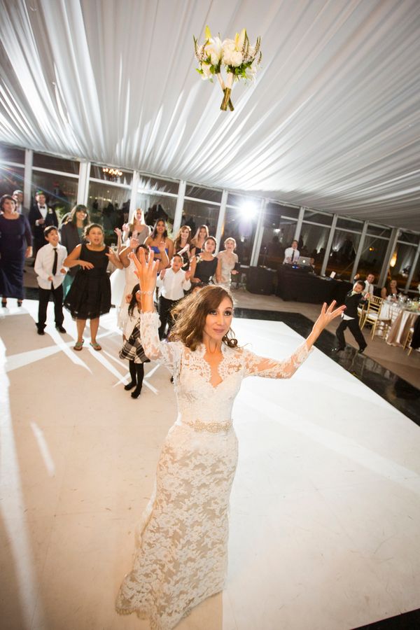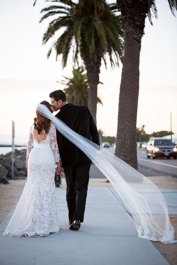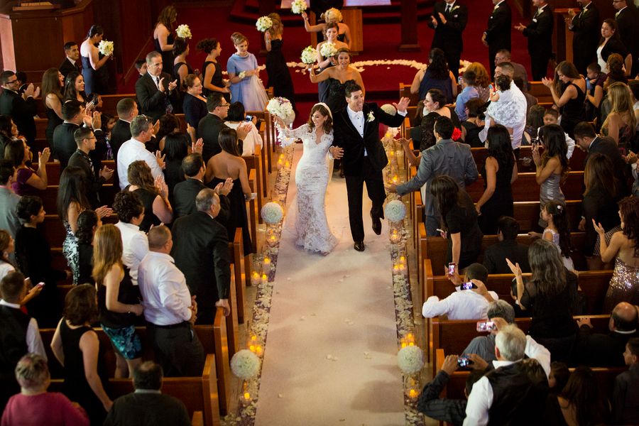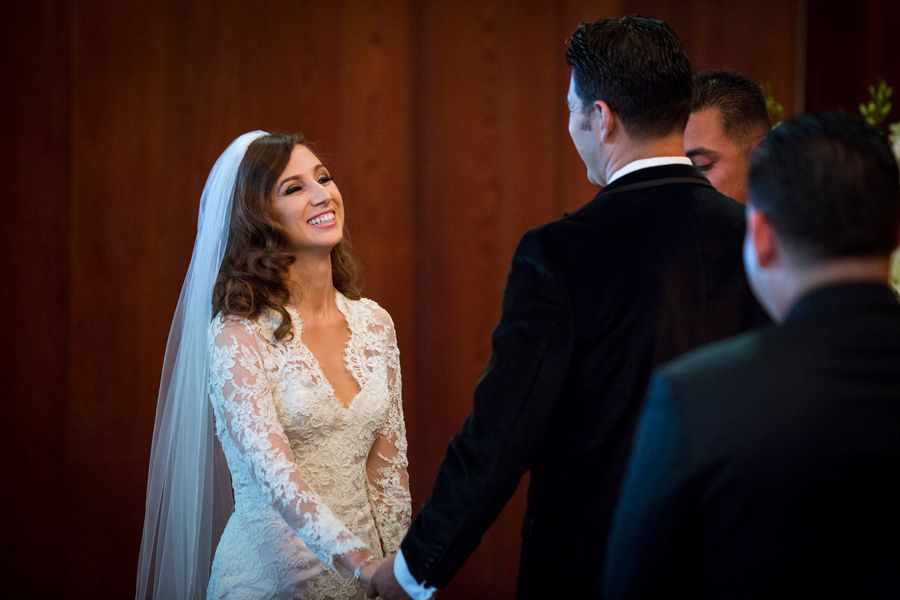 Stephanie and Juan Munoz tied the knot in traditional Mexican-Catholic style in a chapel surrounded by family on SF's Treasure Island. The bride dressed in white lace while the rest of the wedding party donned black. The city skyline made for a picturesque backdrop as the couple posed for their wedding portraits. Complete with a low-rider Lincoln Continental, traditional folk dancers, and a mariachi band, the festivities lasted late into the night.