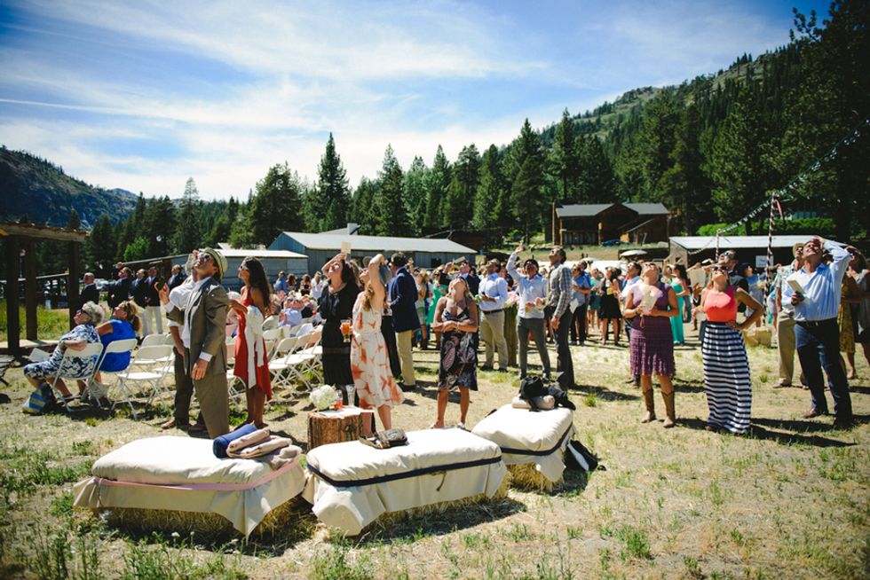 Tal and his bride Sara held their June 21 nuptials at the Squaw Valley Stables in Lake Tahoe. The bucolic setting was filled with 230 of the couple's closest friends and family, many of whom came clad in cowboy hats and boots, keeping in step with the country feel of the wedding.