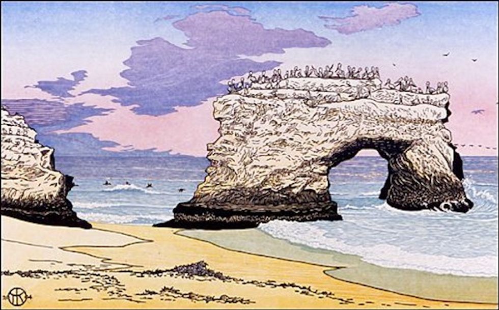 From the eponymous book (due out from Heyday in July), California’s Wild Edge features the glorious Japanese-style woodcut prints, depicting the spirited landscapes of the California coast, of Pt. Reyes Station–based artist and author Tom Killion. We confess we are newcomers to Killion's work, but upon reading his bio, we are fascinated and quite obsessed. (And we need one of his prints for our offices, ahem.)