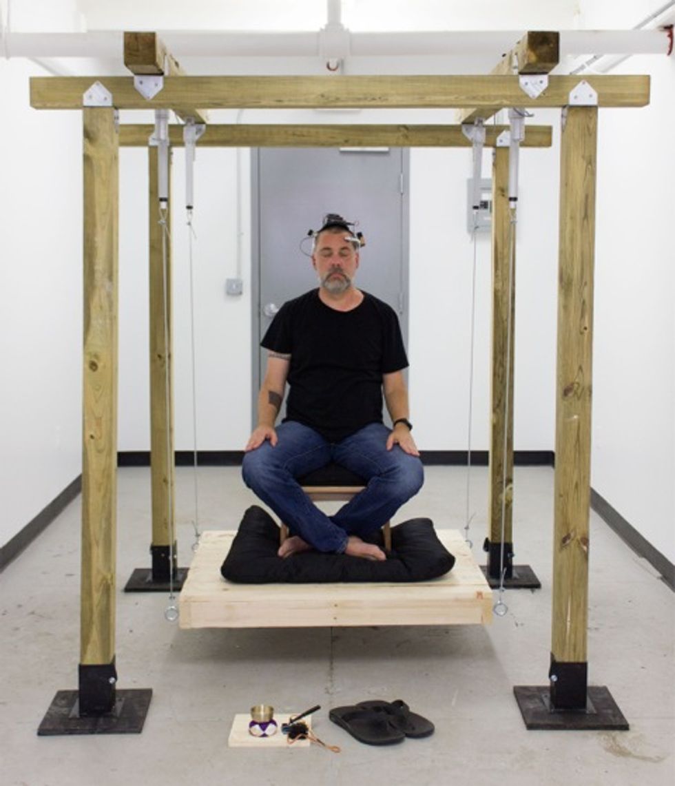 See an artist use the power of his mind to levitate. John Slepian used a hacked toy brainwave sensor, electronics and powerful actuators to float—and he videotaped it for non-believers.