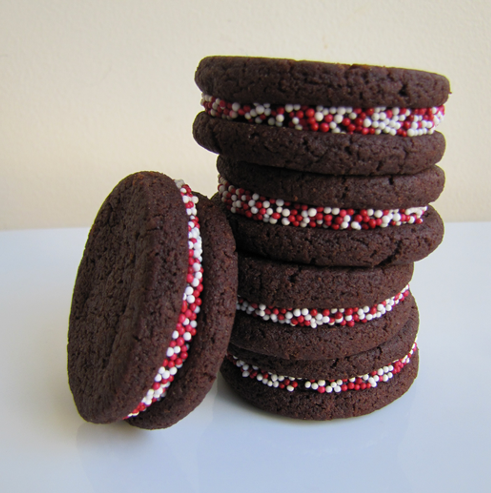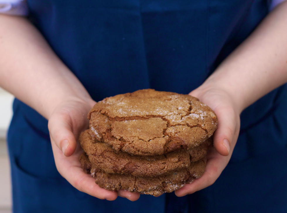 Baker & Banker's Lori Baker bakes a down-home spin on the mass-marketed Oreo for the holidays: A chocolate cookie with vanilla buttercream filling and sides coated in crushed peppermint. She also has a chewy-soft ginger cookie on offer that includes both candied and dried ginger, and is a whopper—just about the size of your favorite Elvis Christmas CD.