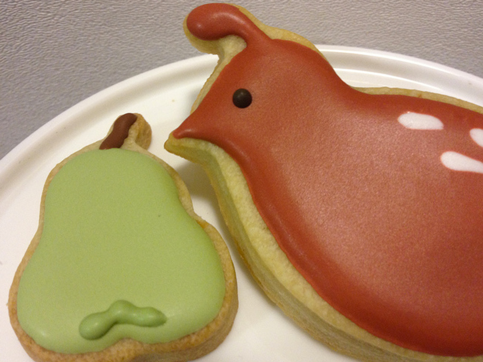 Miette has been making extra delicious traditional sugar cookies for the past ten years, using liberal amounts of Straus butter. Each one is hand-decorated by Jeff Goesche, who has a striking understanding of realistic colors and details. Just check out that patridge and pear duo above. If you like Goesche's style, he also teaches cookie decorating classes in the bakery.