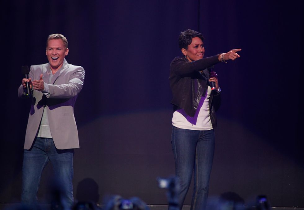 It was a carefully orchestrated television event for GMA - and heavily make-up-ed hosts Robin Roberts and Sam Champion came on and off the stage between songs to gather soundbites for the show. At one point, Roberts teased to the cameras that Britney had made a "major announcement" to her backstage. She obviously couldn't blow the news before the show aires on Tuesday, so we'll have to tune in next week to see what it is. Bets?