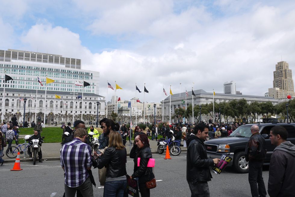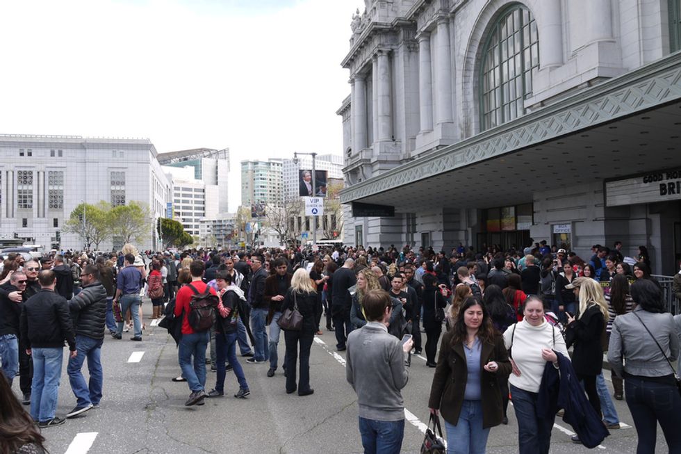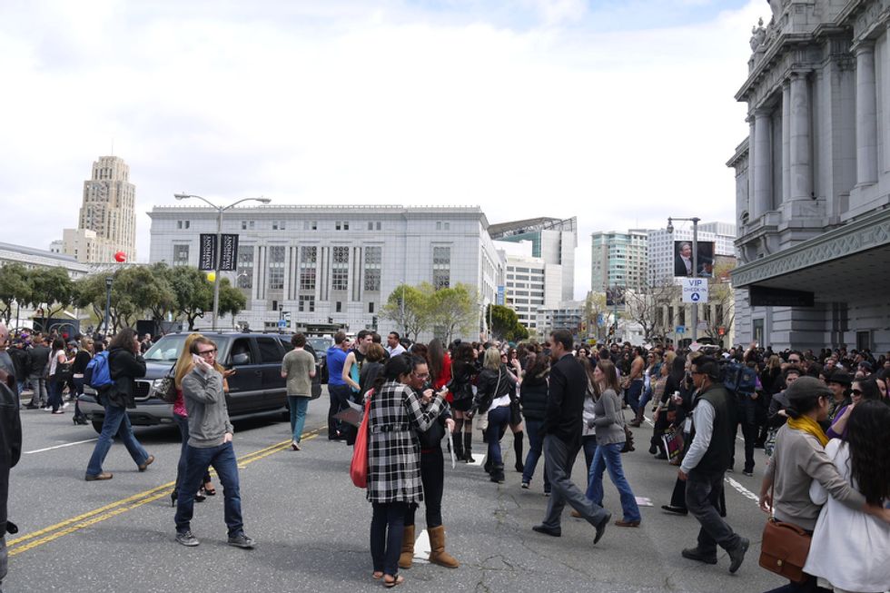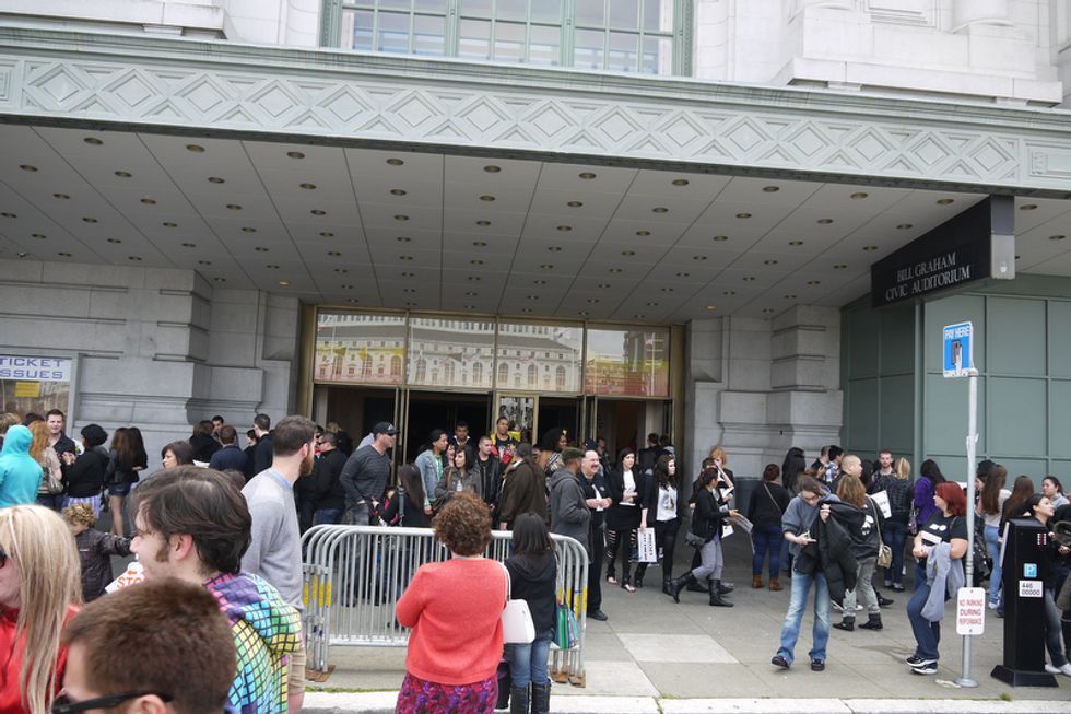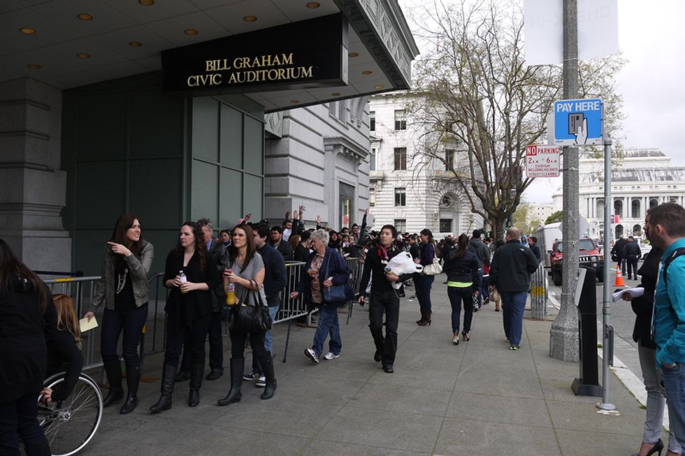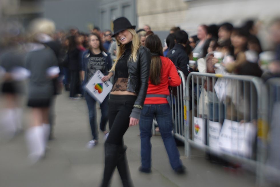 And here we thought San Franciscans only lined up for new Apple products. The scene outside Bill Graham Civic Auditorium this morning outmatched the fervor of any iPad release - complete with drag queens in school girl outfits, gaggles of bubbly tweens and of course, a solid gay fan base, many of whom had camped out overnight to secure a good viewing of Britney Spears' highly-anticipated free concert. The show, which was originally slated to go down in front of the Castro Theatre but was canceled last week due to rain concerns, sold out in less than 14 minutes as a ticketed event.