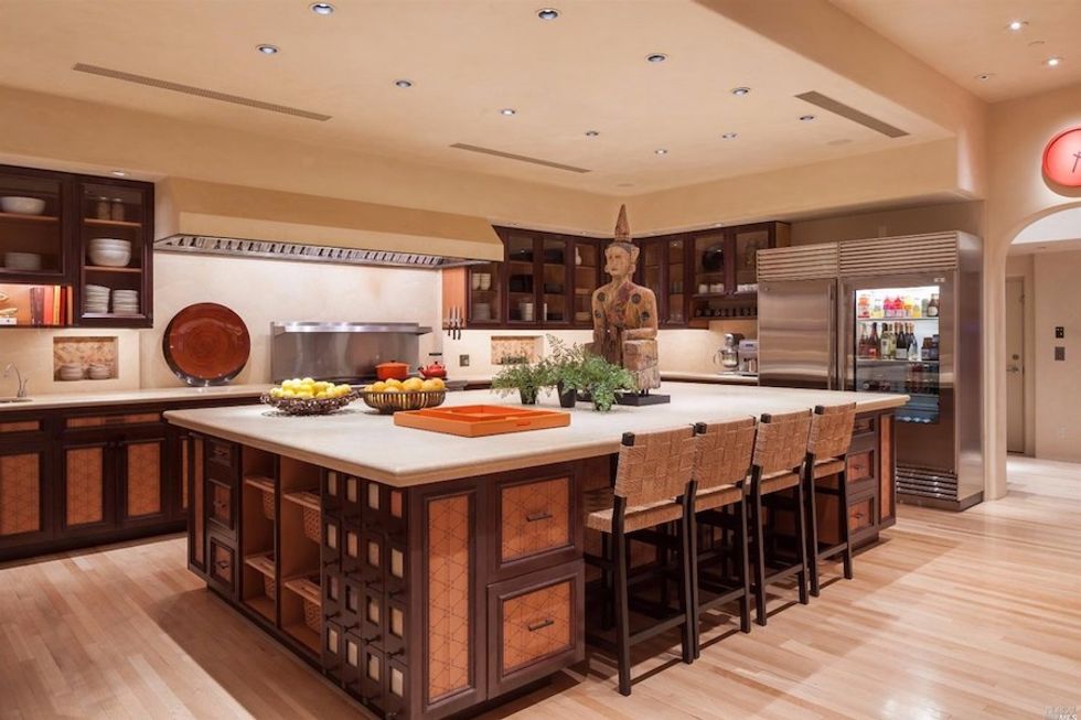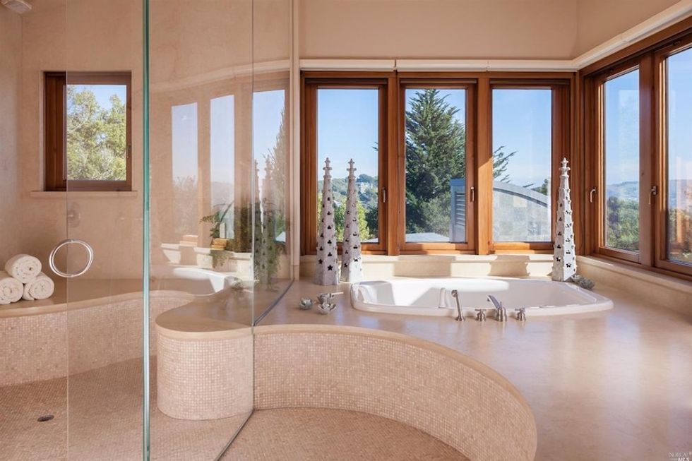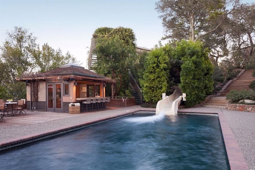 As the homeowners of this absurdly sustainable villa, you'd never be bored. Who could be with a music studio, home theater, a total of 14 bathrooms, a regulation racquetball court, an outdoor kitchen complete with a brick oven, and heavenly views of San Francisco? And your guests will never be bored either—they'll stay in your two-bed, two-bath guest house and splash down the hedge-cloaked waterslide into your pristine pool.