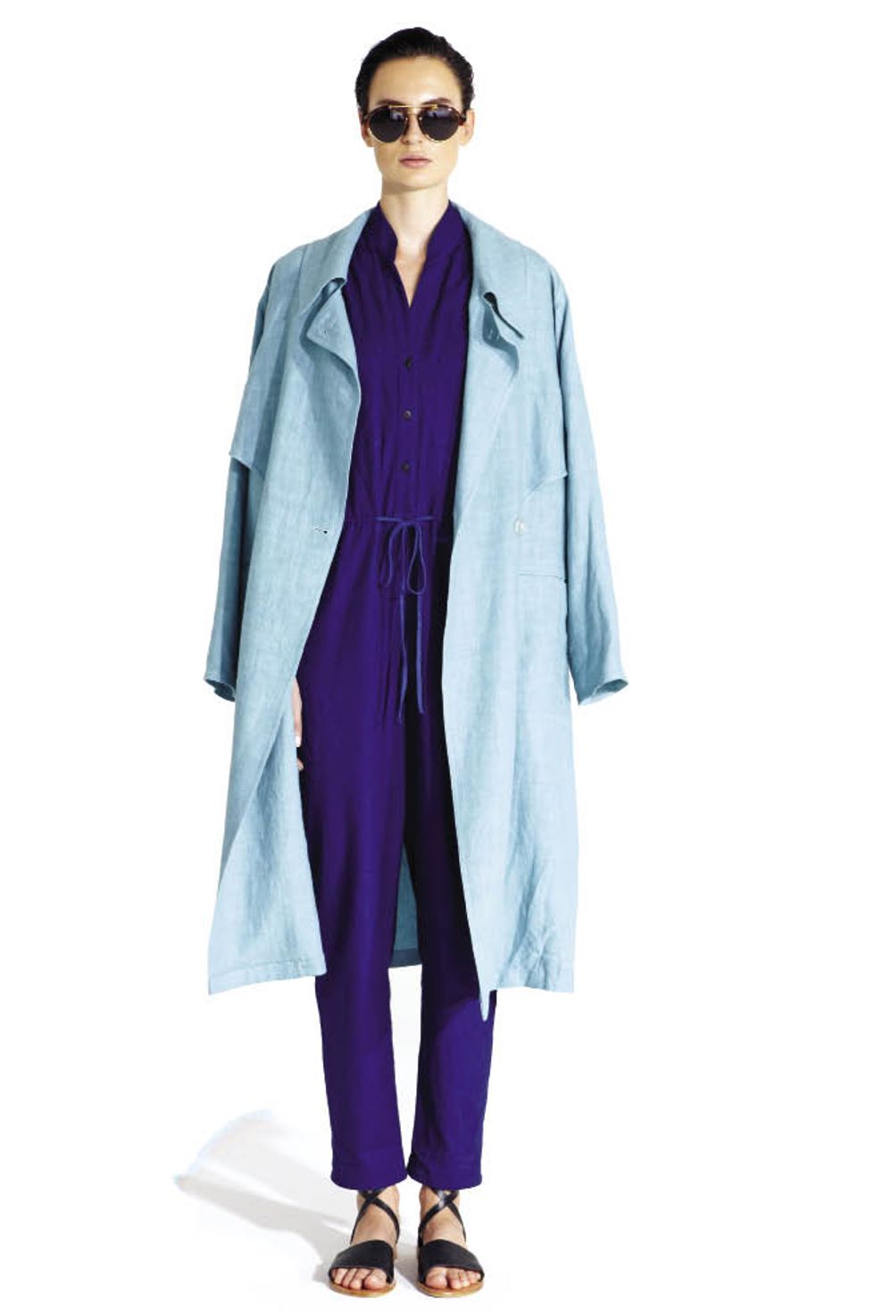 Apiece Apart linen trench coat and flight suit / $550 and $425