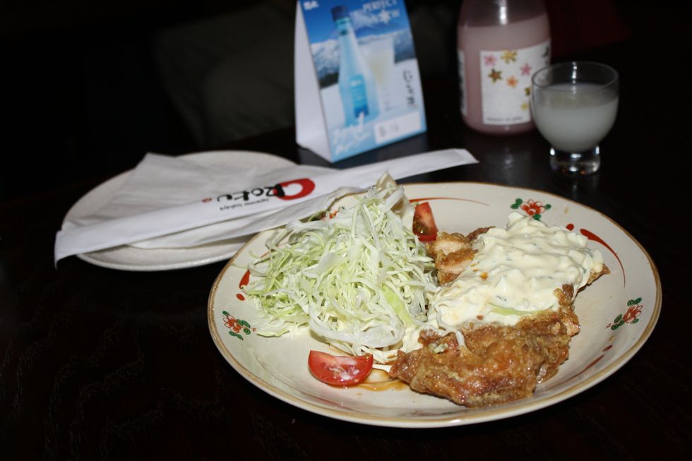 Our chicken nan ban ($8) came first, a breaded and fried cutlet doused in a pool of Japanese-style tartar sauce mixed with chopped-up egg. Shredded iceberg lettuce and quartered cherry tomatoes filled the rest of the plate. The dish's biggest asset was the chicken itself, which managed to stay super tender under the golden coating. I later learned it's dipped into a sweet-sour vinegar sauce, called amazu, after frying. Hamada says people have been asking for hot sauce with the dish, which isn't traditional, but he'll probably start offering it to appease American palates. Apparently chicken nan ban is huge in Tokyo right now.