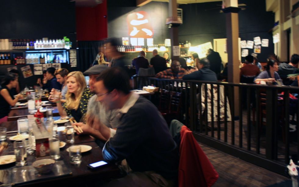 The izakaya openings flurry of 2010 and 2011 has abated, but the genre lives on. We've yet to see a major izakaya shutter, and one more hit prime time six weeks ago: Roku (1819 Market Street), from Jay Hamada of the JapaCurry food trucks. On Saturday, I ventured out through the downpour to try it out. It was a perfect, chilly night for fatty, warming izakaya fare, but—given how young the restaurant is—I was still a little surprised to see the place packed, with a waitlist running for tables.