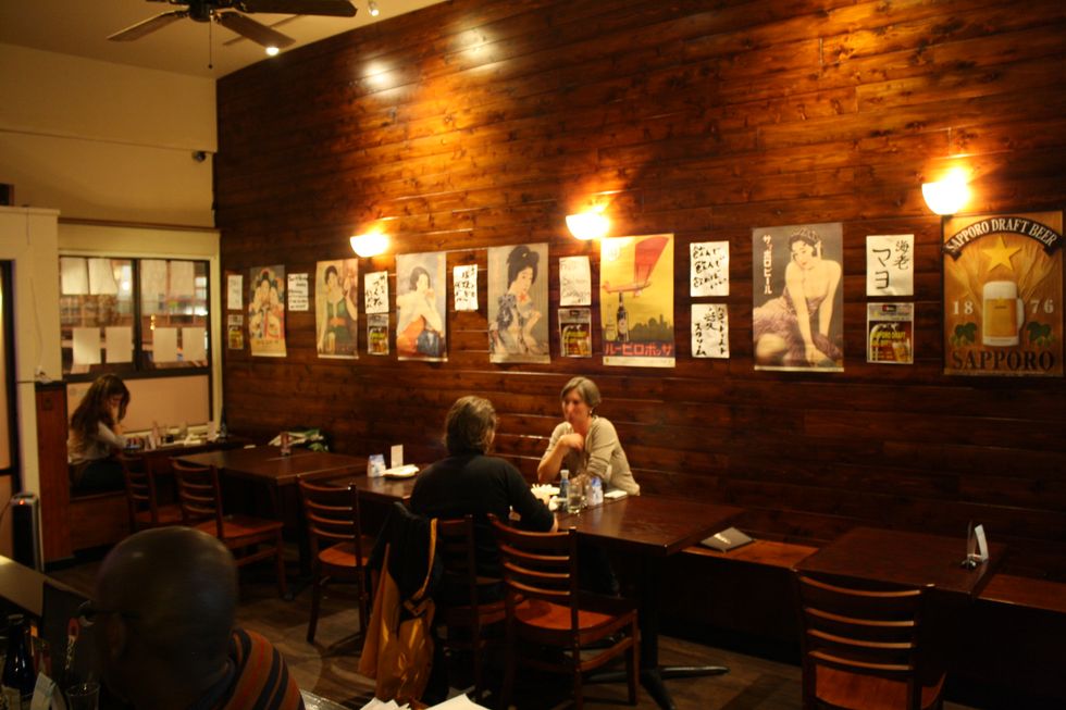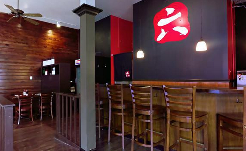Hamada said his revamp of the former Hunan Garden space was minimal, but it's significant enough to make the space feel attractive and new again. As you can see from some of the pictures above, there's a sleek and manly Japanese feel to the room now, all gray and dark wood with the striking red logo seared into the wall.