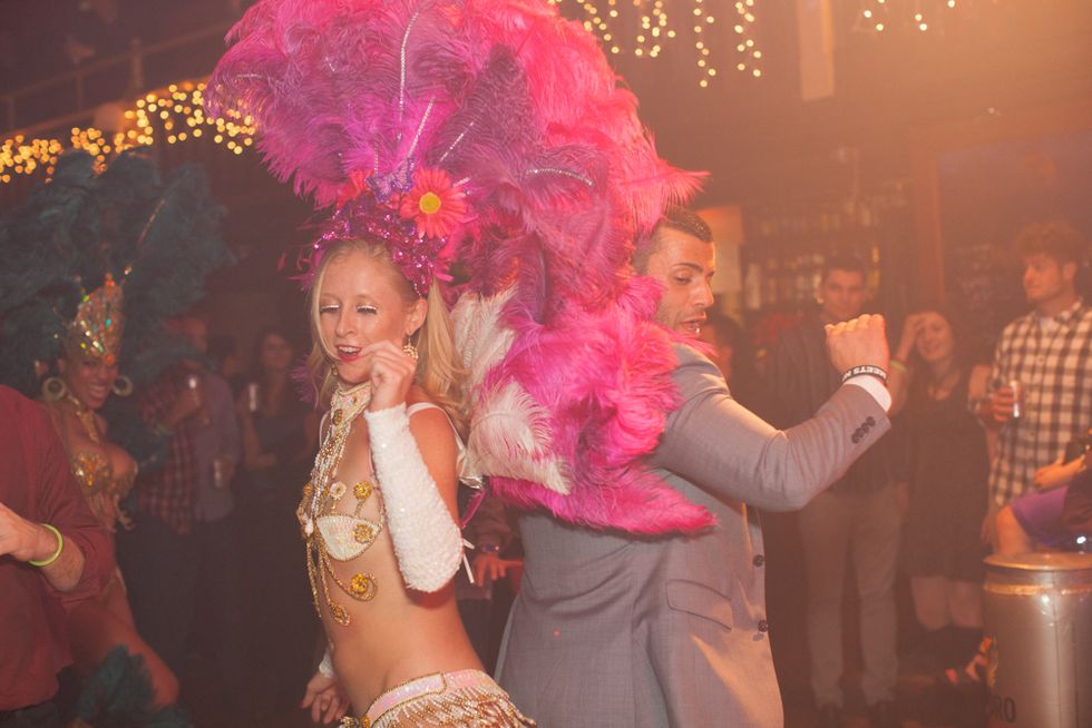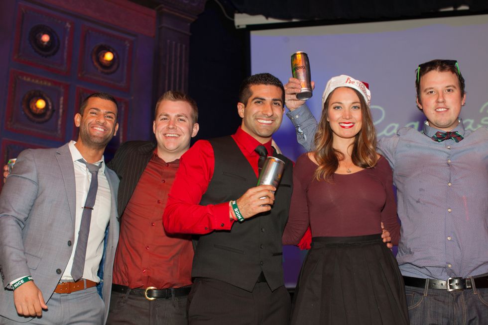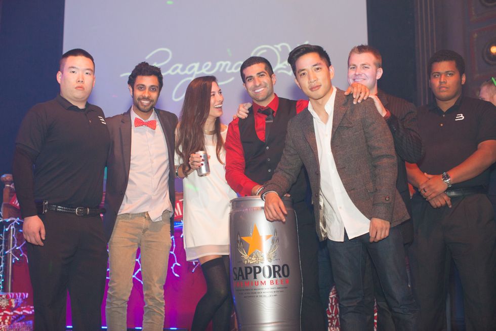 Guests sipped specialty beverages from supporters Distillery 209 Gin—try the recipes below!—while also grooving to a set by DJ Young Peezy, and sexy samba dancers and aerialists. Partner Sapporo premium beer sponsored a lively Santa Claus photo booth provided by LiveFotoSF. Check out the photo strips here.
