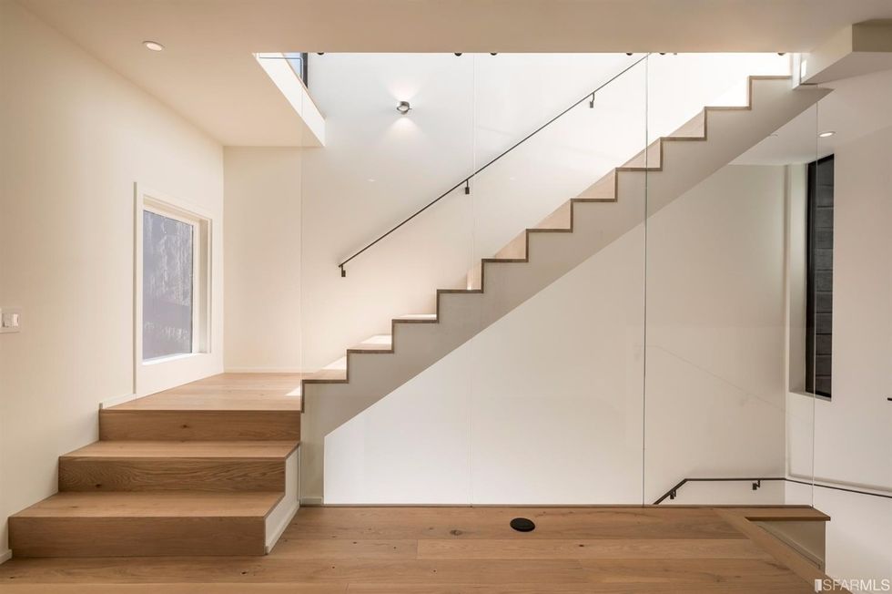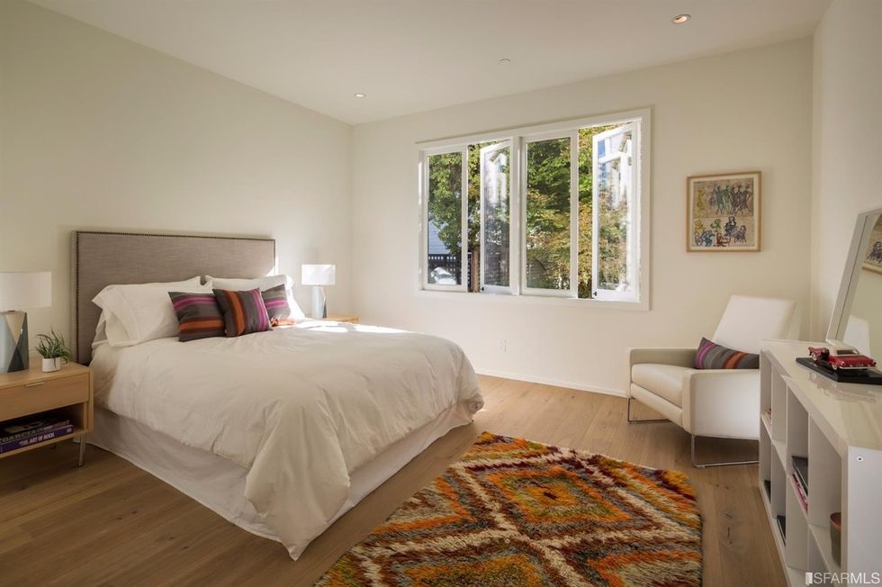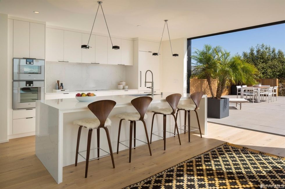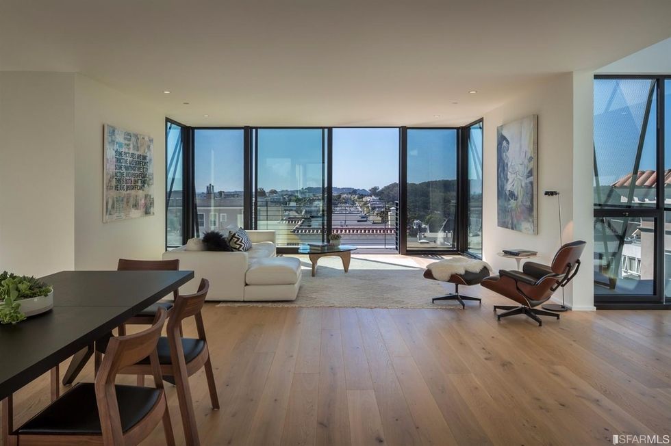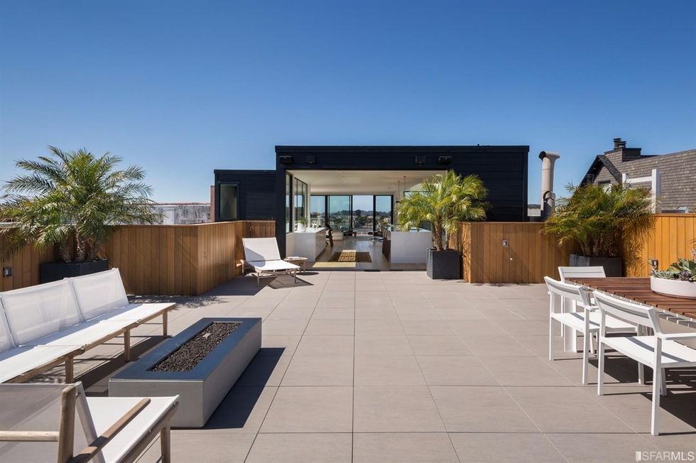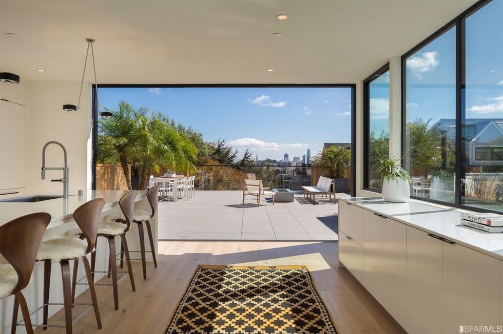 On a tree-lined-street just a block from the Presidio's walking and biking trails, this contemporary abode feels like a serene getaway, with an abundance of natural light flooding through its floor-to-ceiling windows. Sliding doors open the entire top floor to a 975-square-foot deck where eastern and southern views stretch well beyond downtown San Francisco. It's an ideal space for entertaining—just imagine inviting your pals over to sip wine and bask in the sun, followed by a sunset supper made from scratch in your super-chic, ultra-sleek kitchen.