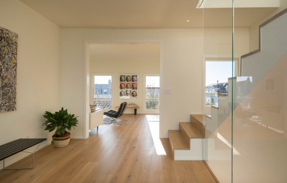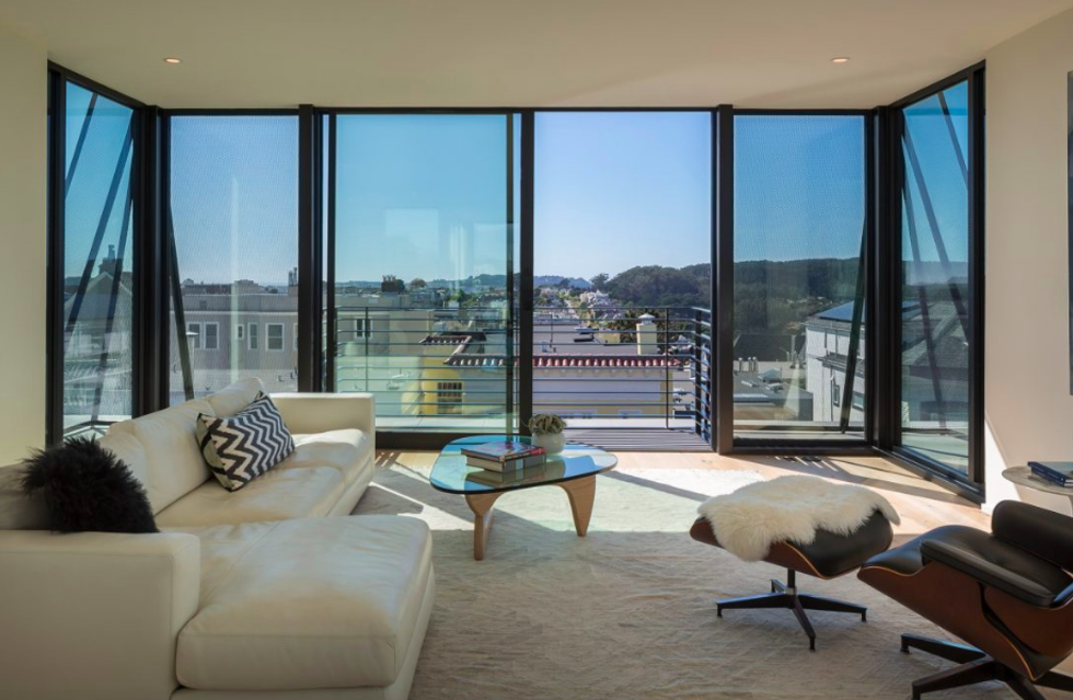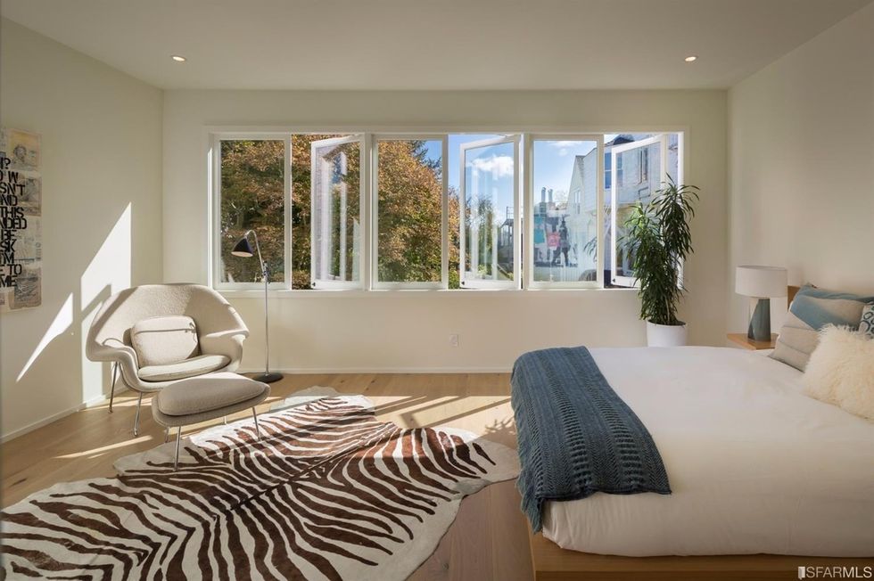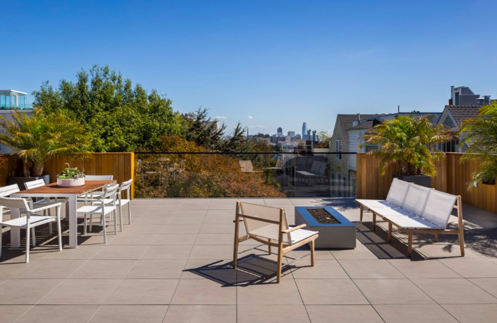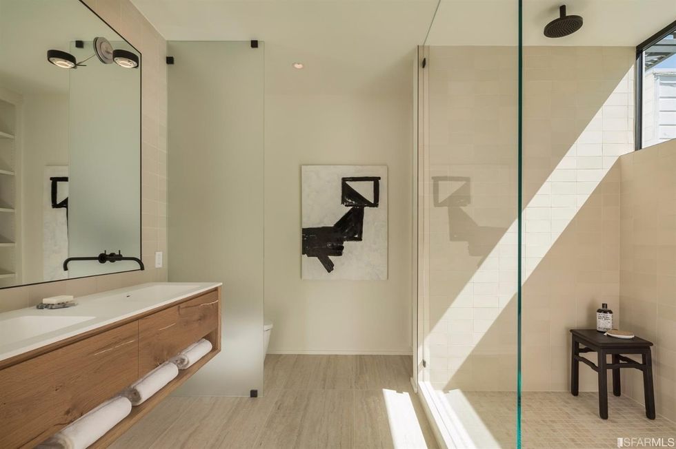 For further panoramas looking out to the skyline and water, pop over to the terrace where you can see across ocean and Presidio for a full frontal of the Golden Gate Bridge—a quintessential bonus for San Franciscans. When you're ready for some down time, descend to the lower level and decompress in the rainfall shower in your gorgeous hotel-esque bathroom. Or, chill in the family room, reminiscent of a Parisian style loft with treetop views.