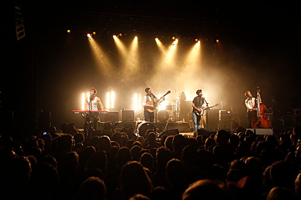 I am generally biased toward smaller venues where crowd members can slip and slide in the performers’ sweat, but Mumford somehow managed to keep their set intimate despite the bigger performance space. Although guitarist and lead vocalist Marcus Mumford was the obvious front man of the group, and did most of the between-song banter, all of the band members stood in a neat line across the front of the stage so that no one performer ever upstaged another. When there was a break in this formation, it was usually Mumford stepping back behind the drum set, still tilting back his head and belting his unique, guttural vocals while pounding away at the toms.