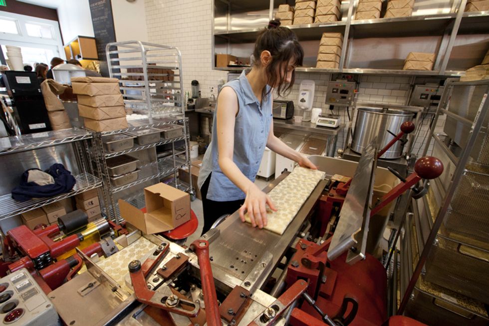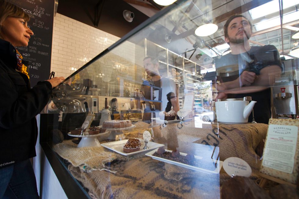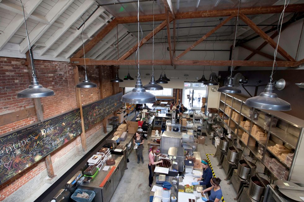 While you may be hard pressed to find Willy Wonka or any Oompa Loompas lording over Valencia Street's new chocolate factory, Dandelion Chocolate, they'll welcome you to take a look at what they have going on.
