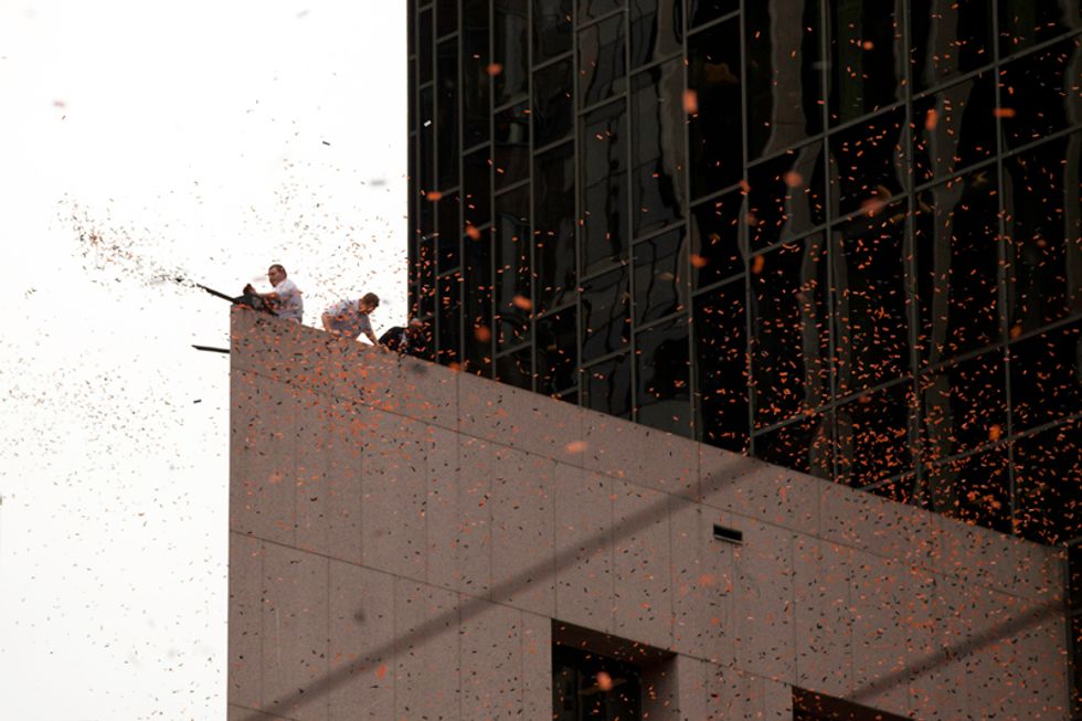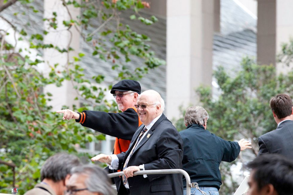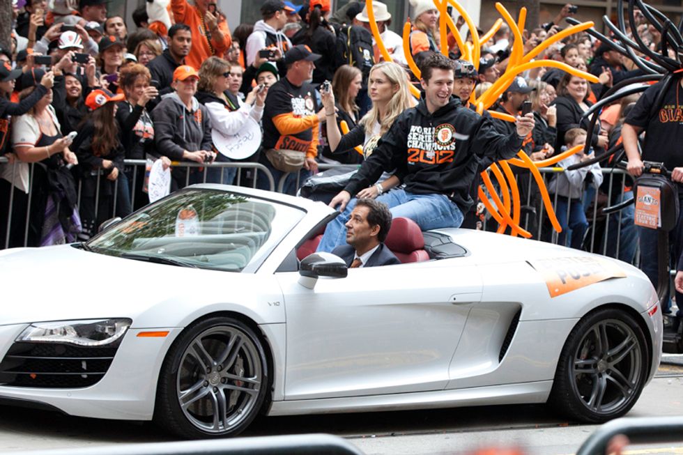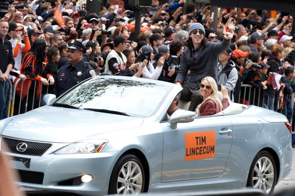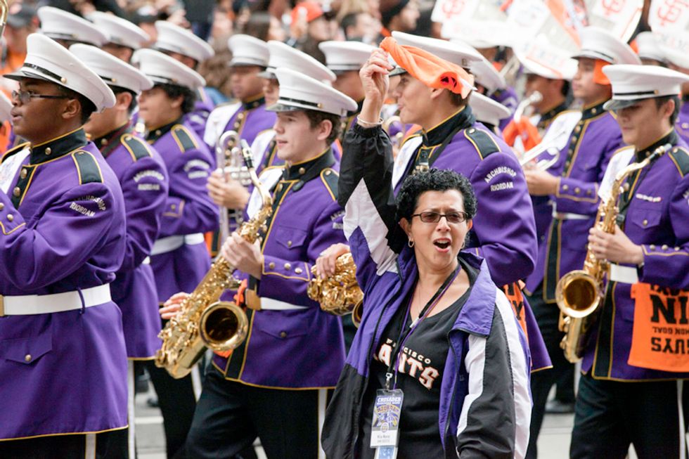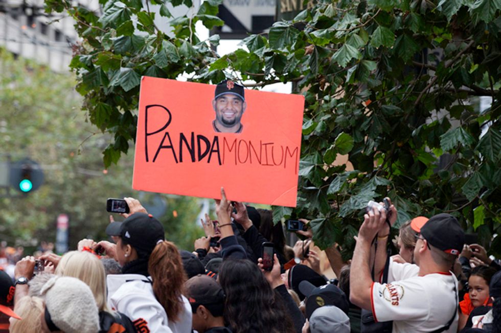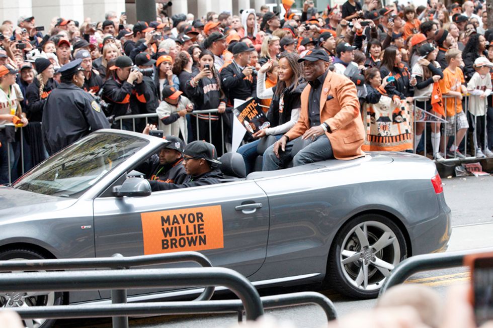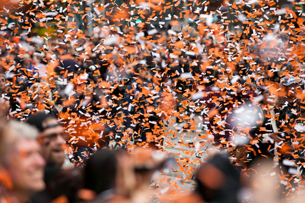 Everyone either skipped work or school to be there, and there must have been thousands, if not hundreds of thousands at the Giants' Victory Parade down Market Street today. We'll have to wait and see if the record from two years ago of a million was beaten. The mash-up of Halloween and the parade was the ultimate celebration for Giants fans from all over California. Maybe we took a photo of you. If not, there's always next year. GO GIANTS.