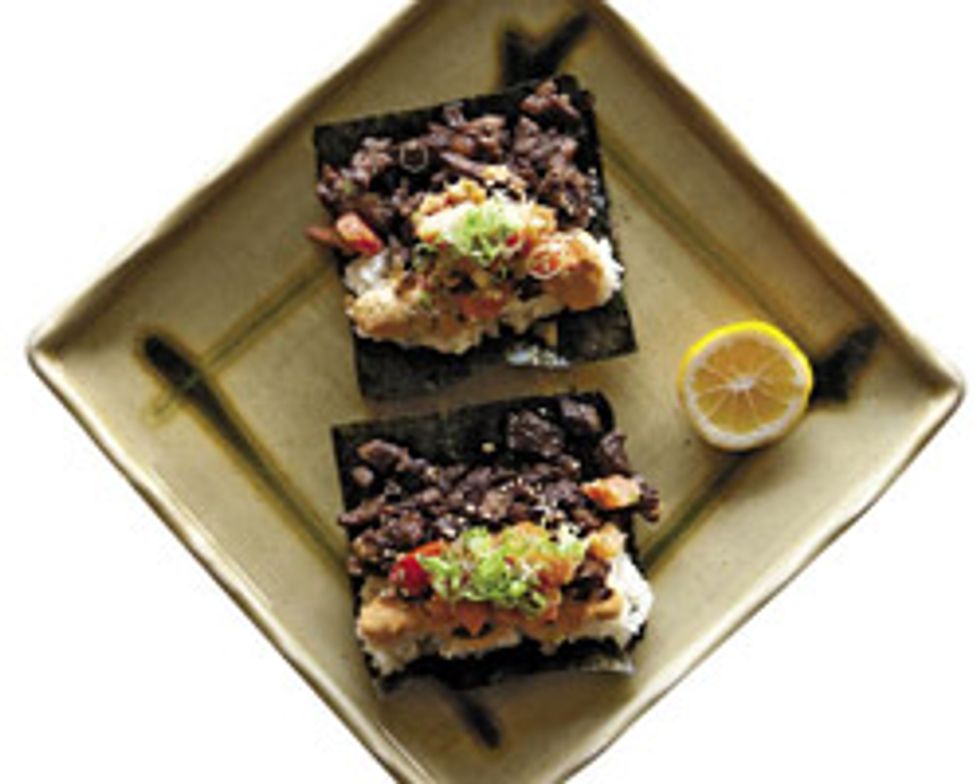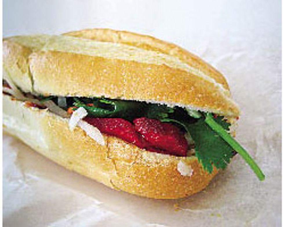 | Pork Banh Mi “Cilantro is not easy because it can make some reds go soapy or vegetal. A Languedoc Rosé would brighten up the flavors and play up the roasted pork.” Our pick: 2009 Mas-Des-Dames Coteaux du Languedoc Rosé ($12 at D&M Wine & Liquor, 2200 Fillmore St. at Sacramento, 415-346-1325, dandm.com) | Salt and Pepper Calamari “Go with Fino sherry, which has a saline quality and can handle the high acidity if you add lemon. Instead of fighting the citrus, it'll shake hands and hang out awhile.” Our pick: El Maestro Sierra Fino ($15 at K&L Wine Merchants, 638 Fourth St. at Brannan, 415-896-1734, klwines.com) |