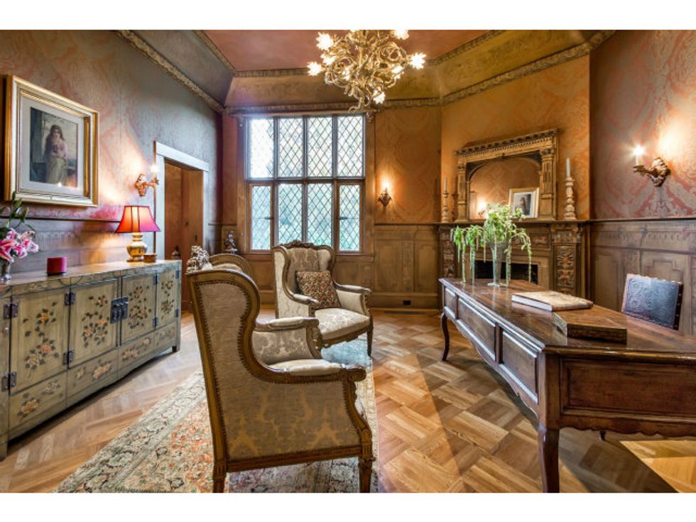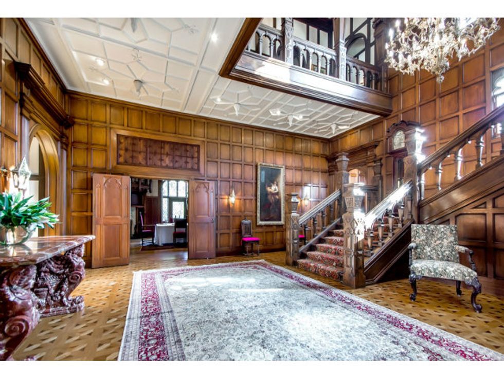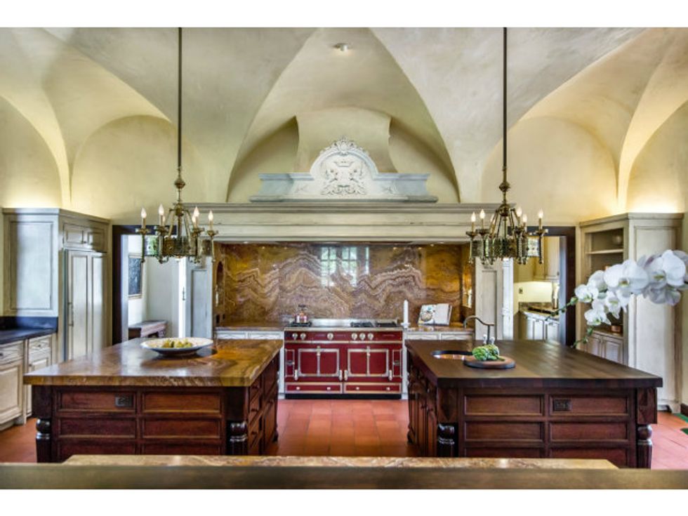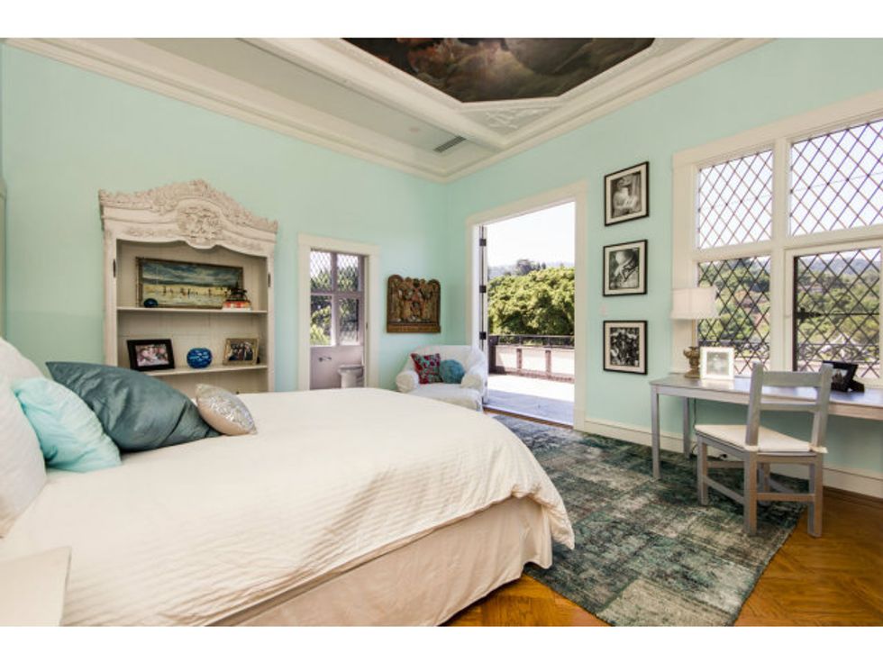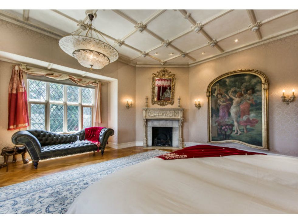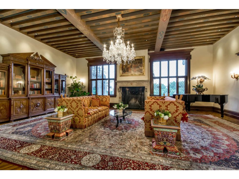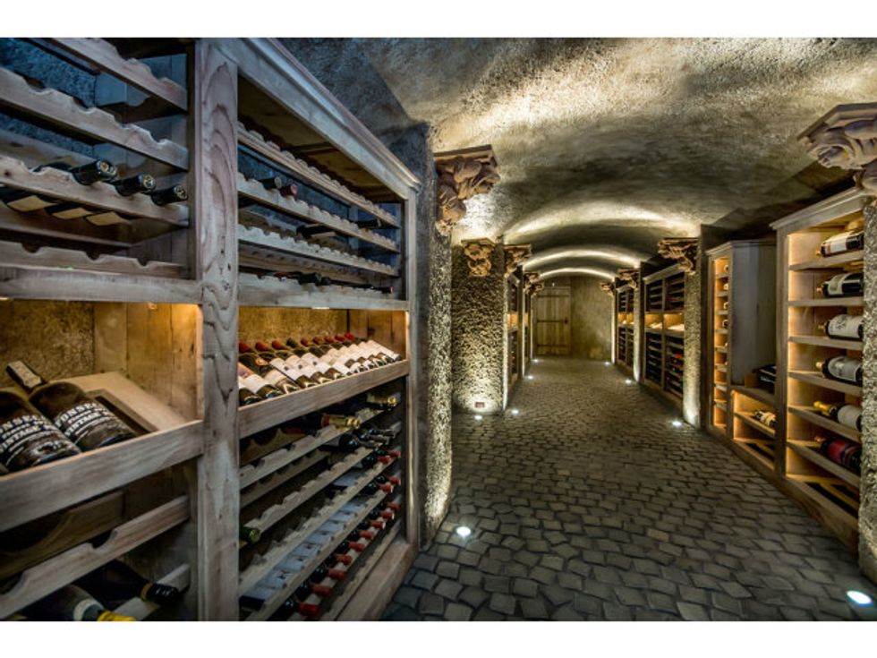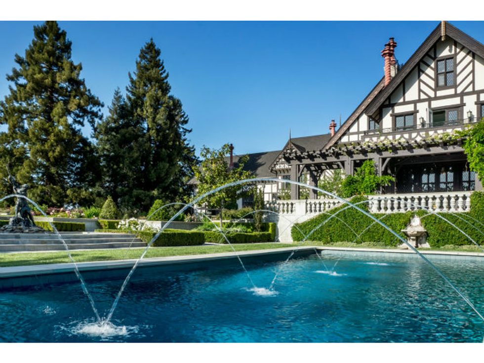 Now the extravagant home boasts seven bedrooms, eight bathrooms, an underground wine cellar/grotto, parking for twenty cars (What. The. Hell?), a pool with fountains, and a secret speakeasy accessed via a false door in the library, where I'm sure you can down a Moscow Mule with some friendly ghosts after a hard day's work.