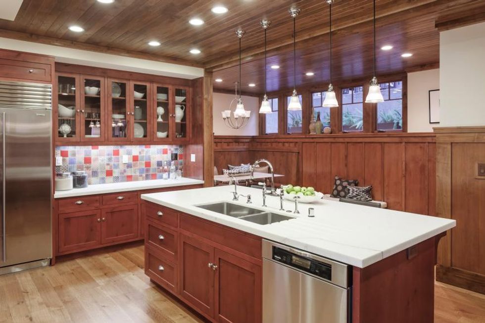 And don't be fooled by appearances, although the home seems to retain most of its turn of the century arts and craft charm, it's recently undergone a huge, down to the studs renovation, so most of the elements are new. Just be wary, because if the big one ever hits, this mostly-glass sucker is going down.
