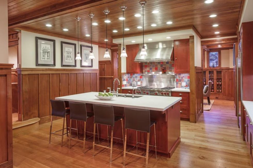 One of the major highlights of this magnificent home is the chef's kitchen featuring a Wolf gas range with four burners, a grill, griddle, two ovens, a Miele dishwasher, filtered hot and cold water, and a sub-Zero refrigerator. All the equipment you need to pretend to be a gourmet chef while you whip up Top Ramen.