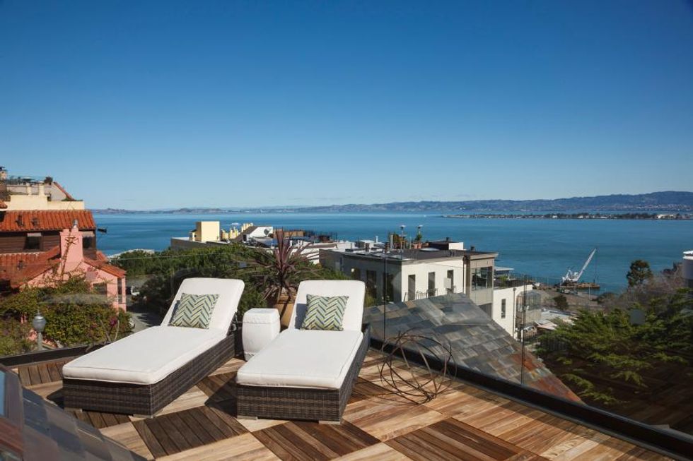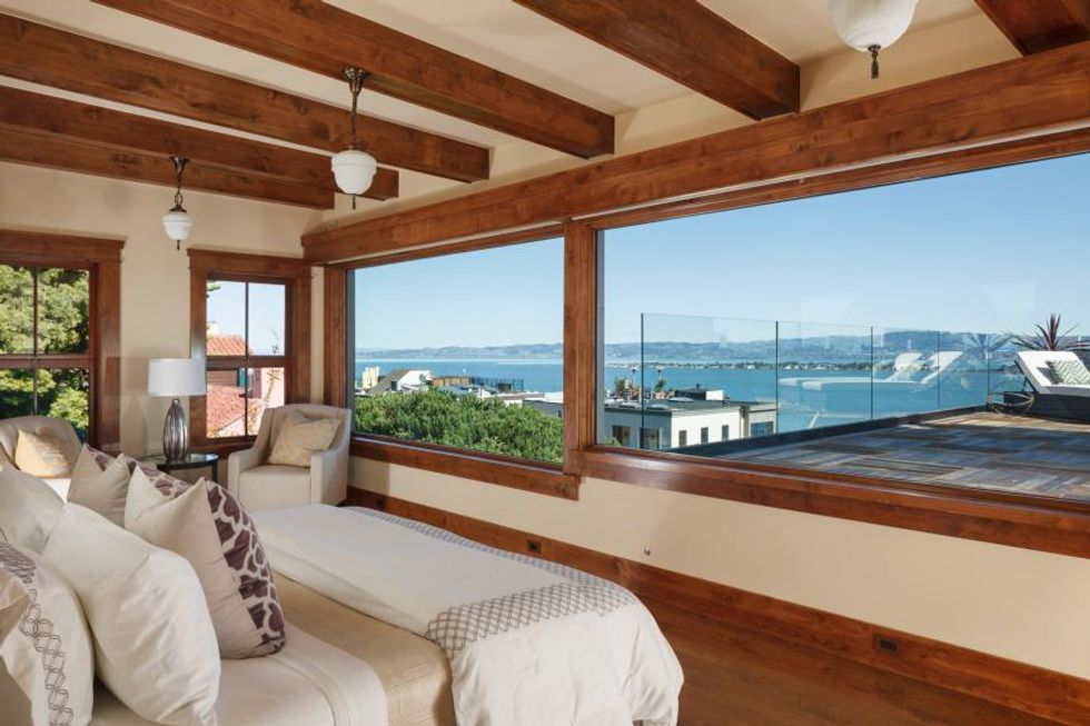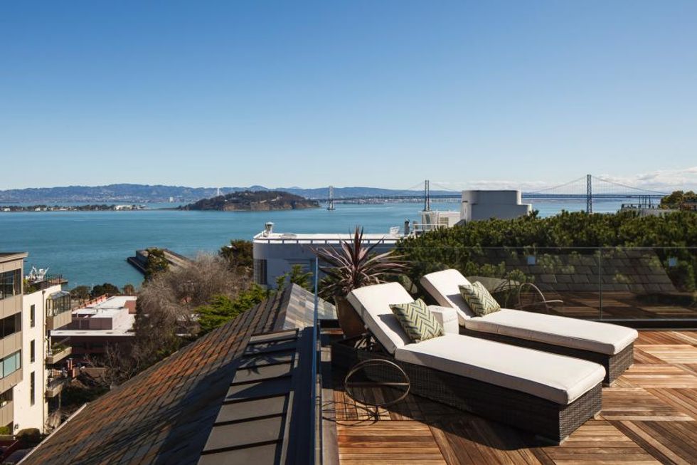 Located on the sun-swept, eastern slope of Telegraph Hill, this circa-1900 mansion offers gorgeous 360-degree views of the Bay Area from three different floors. The master suite - which takes up the entire top floor – has immense picture windows, and a wraparound terrace that lets you lounge while you admire Coit Tower, the Bay Bridge, and the little folk at the bottom of the hill. All while rather close property lines simultaneously let your neighbors admire you.