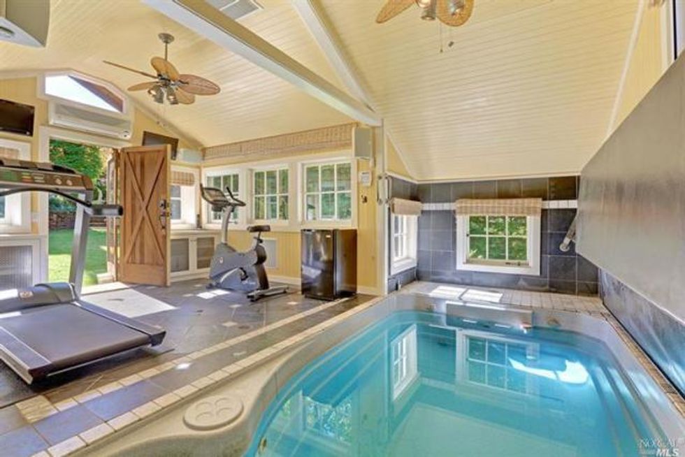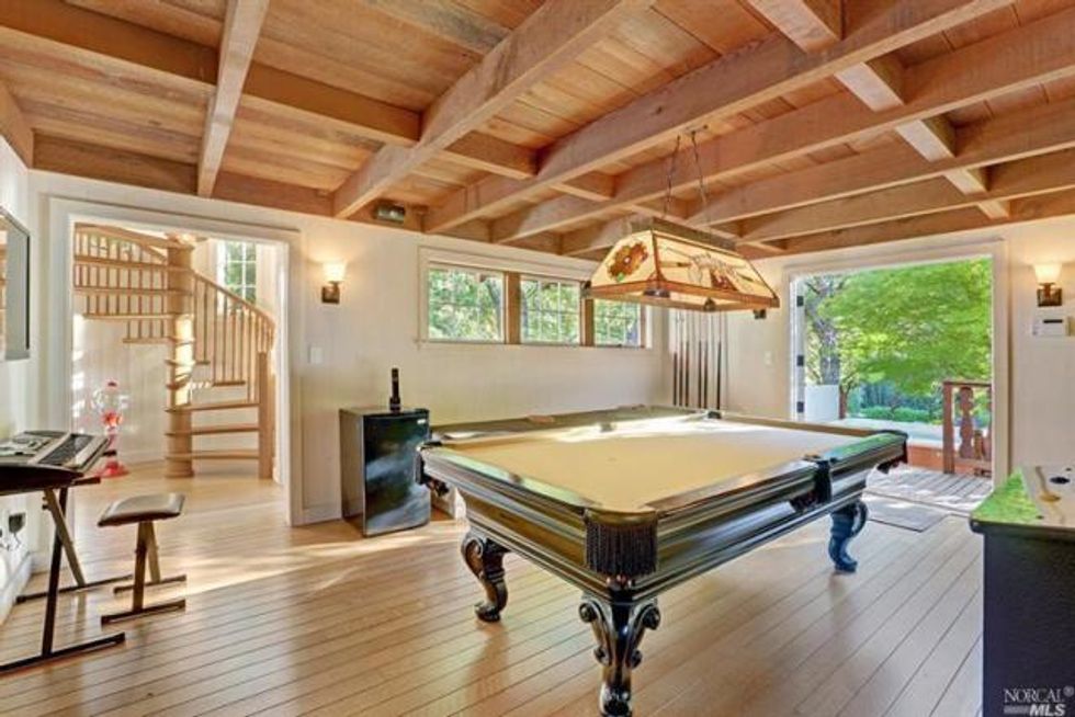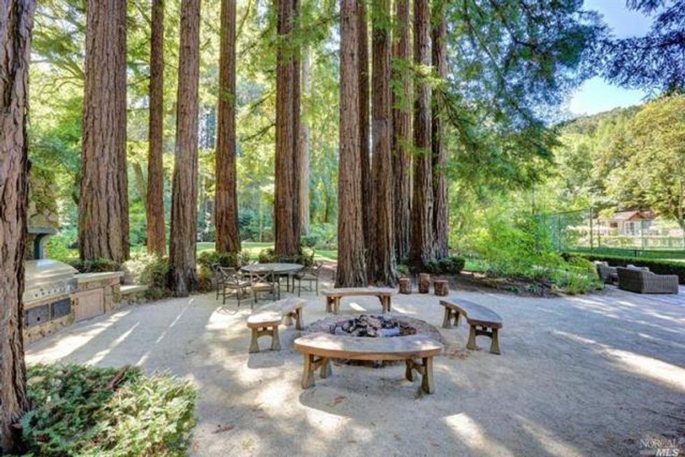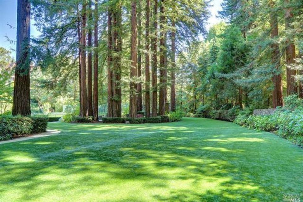There's also a 7 car garage– you know, for your collection of vintage Bentleys to drive you between the different sections of your house – an outdoor pool, an indoor gym with hot tub and yoga room, tennis courts, and a barbeque pit surrounded by majestic redwoods.