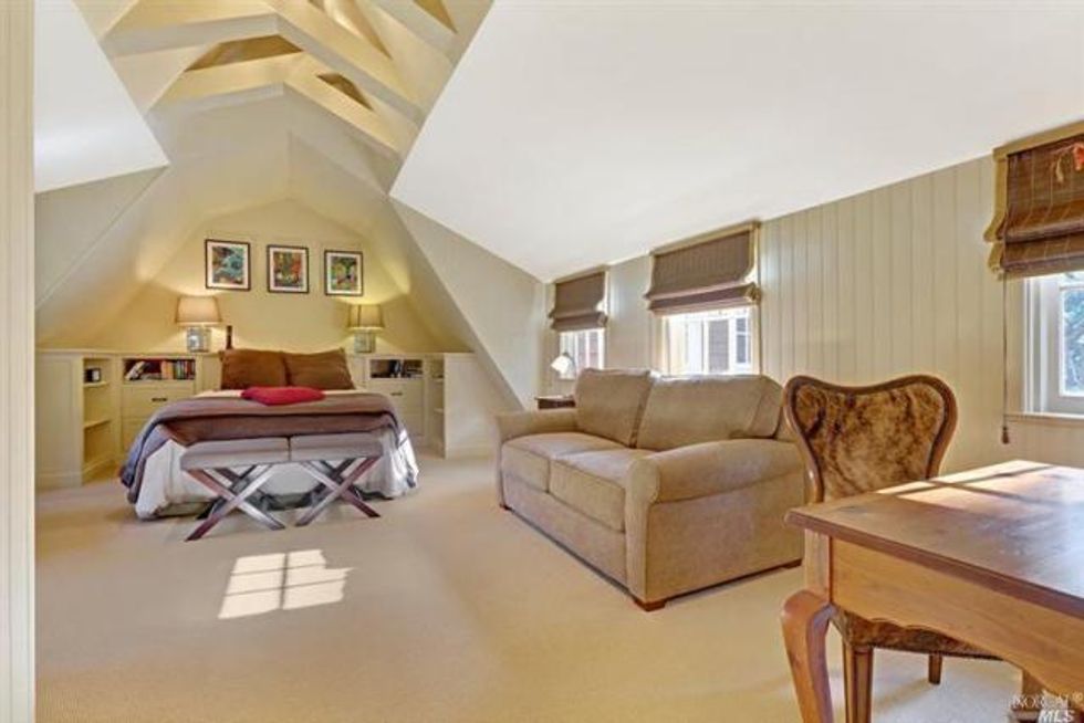 Totalling 11,500 square feet, this nice little home is comprised of six separate buildings. Six of the bedrooms (and the kitchen) are located in the 6,000-square-foot main house, and everything else is spread out over the other five buildings. So, if you really hate your roomates (or your mother-in-law) you can always banish them to the furthest barracks without any supper.