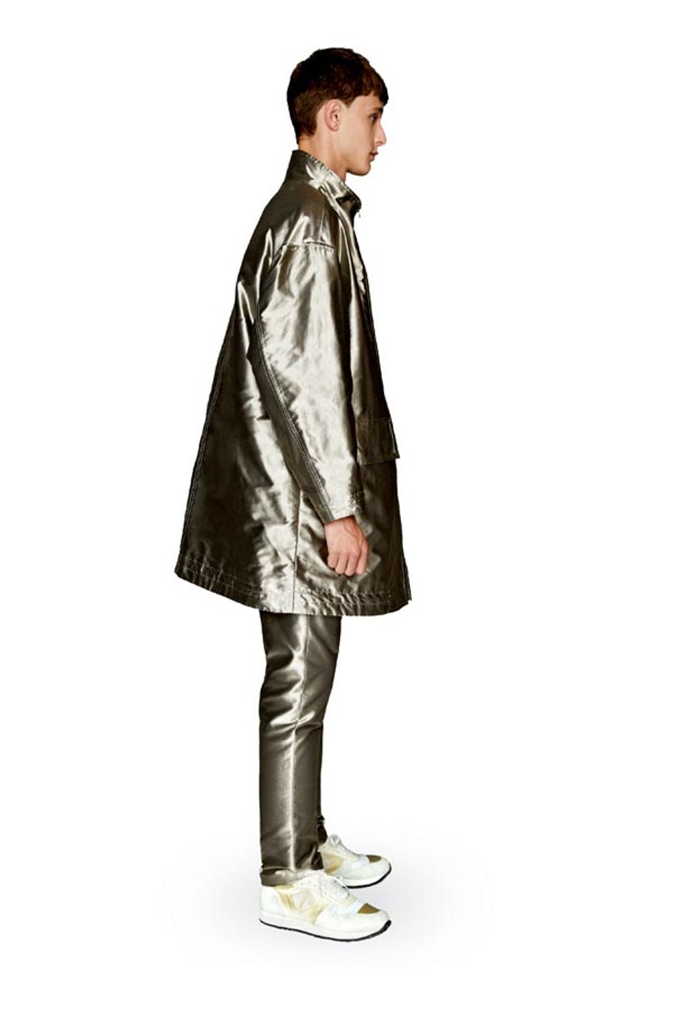 10. Silver Dion Twill Funnel Collar Coat and Slim Trouser: Opening Ceremony, $895 and $415