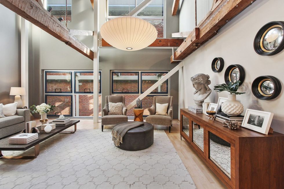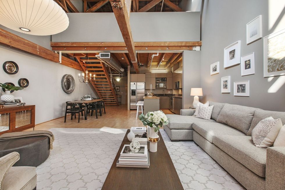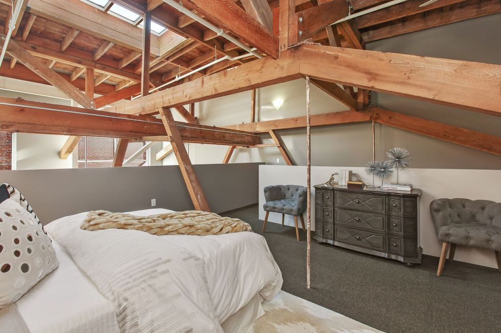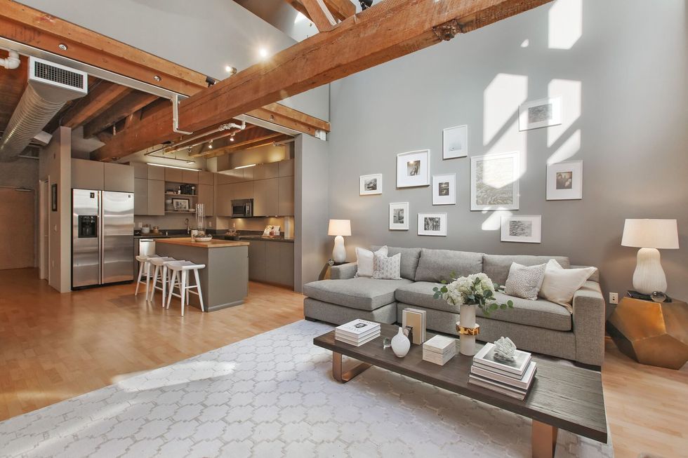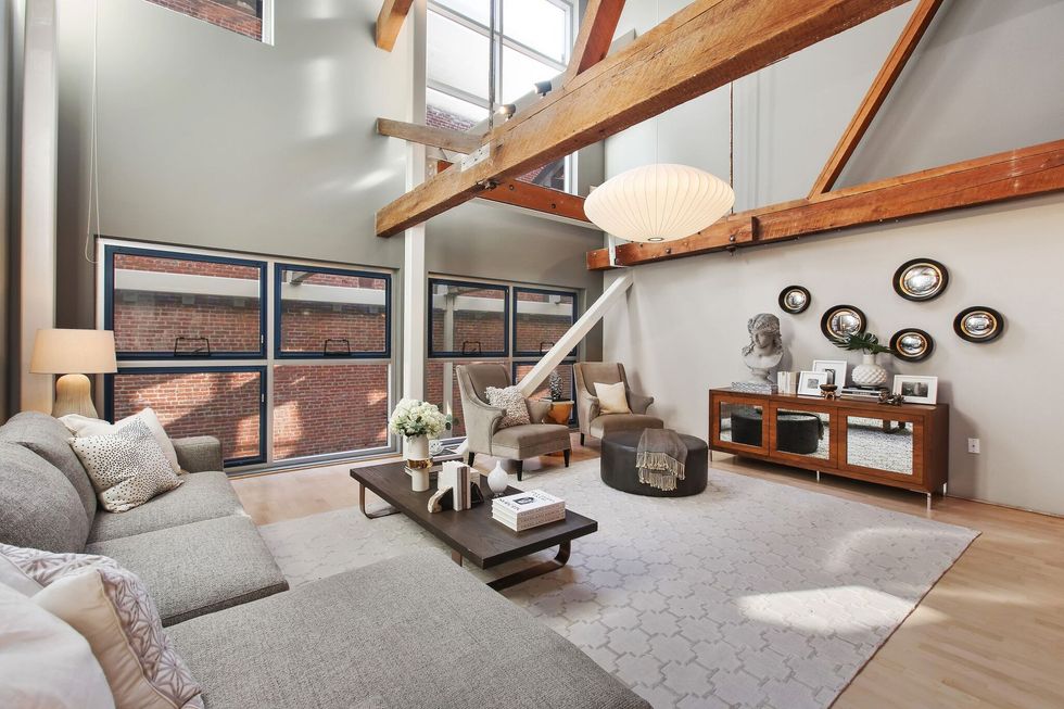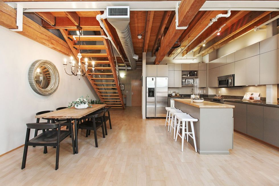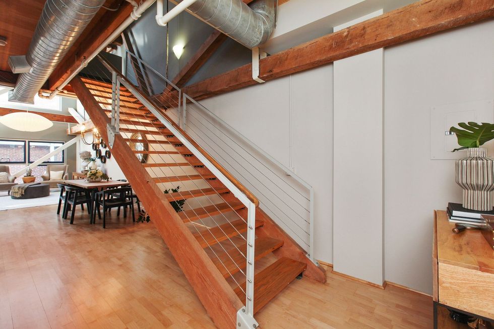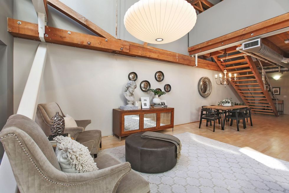 Just a block off the palm-lined Embarcadero and a Hunter Pence swing from AT&T Park, but tucked into the quiet enclave of Delancey Street and partially obscured by trees, the 66-loft building has an air of privacy and a vintage vibe, retaining many of the original qualities that give the warehouse so much character. Recently to hit the market, Loft 304 is all you'd expect from a converted industrial residence in SoMa: 20-foot ceilings, skylights, dramatic windows, hardwood floors, and, the highlight, original exposed brick and timber beams.