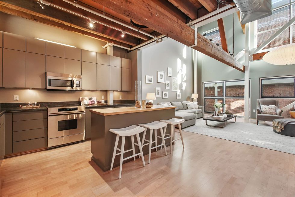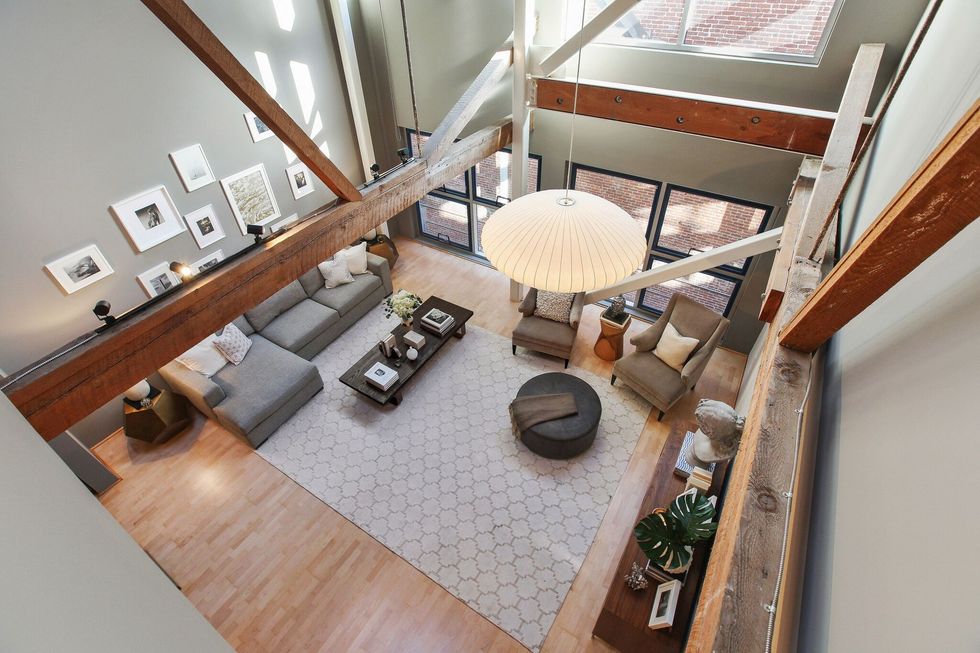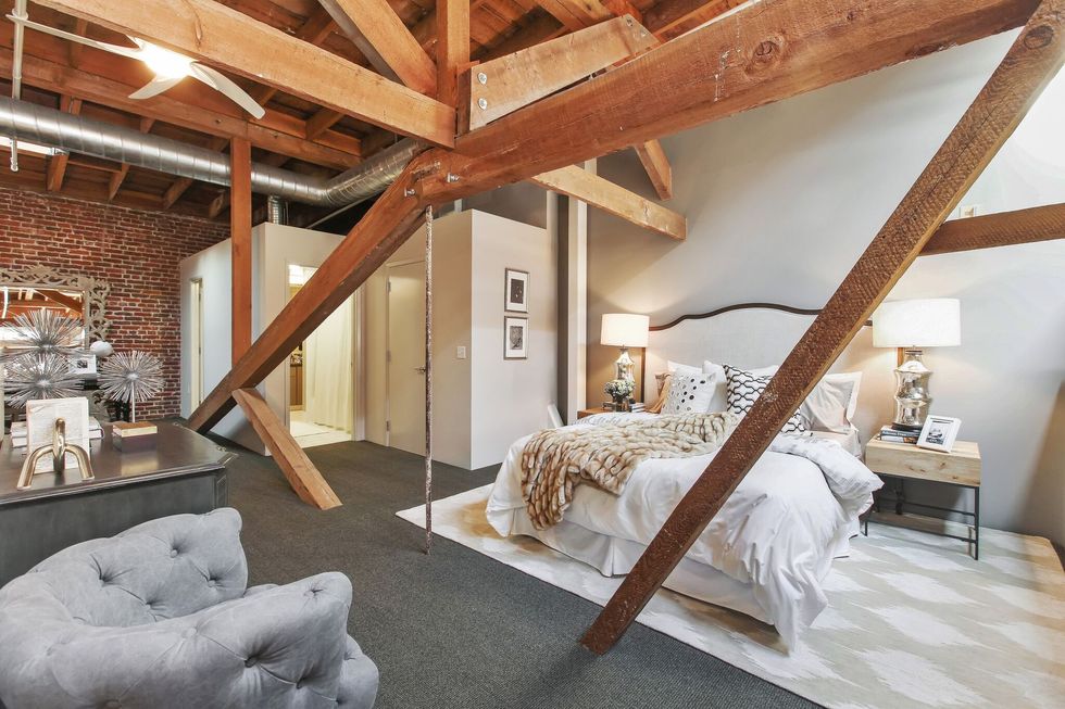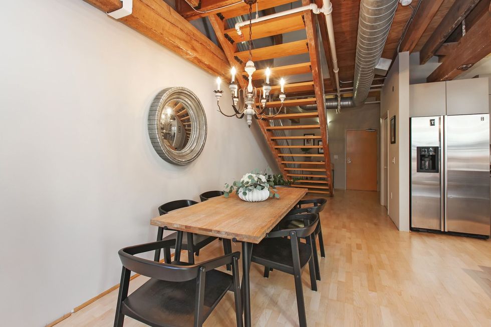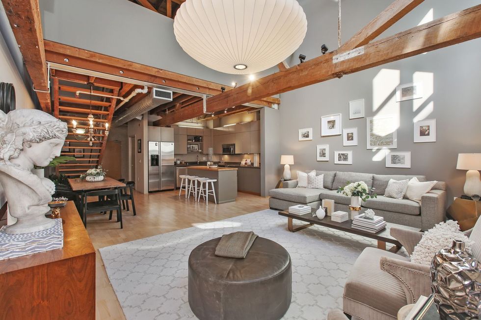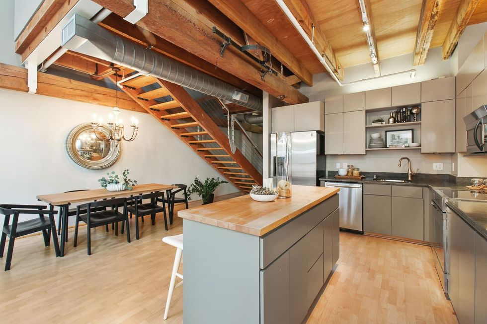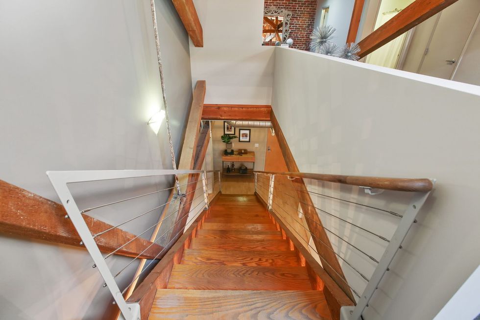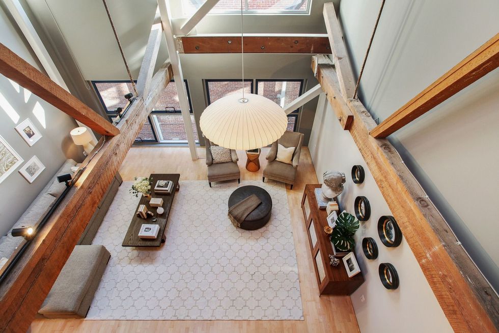 Just a block off the palm-lined Embarcadero and a Hunter Pence swing from AT&T Park, but tucked into the quiet enclave of Delancey Street and partially obscured by trees, the 66-loft building has an air of privacy and a vintage vibe, retaining many of the original qualities that give the warehouse so much character. Recently to hit the market, Loft 304 is all you'd expect from a converted industrial residence in SoMa: 20-foot ceilings, skylights, dramatic windows, hardwood floors, and, the highlight, original exposed brick and timber beams.