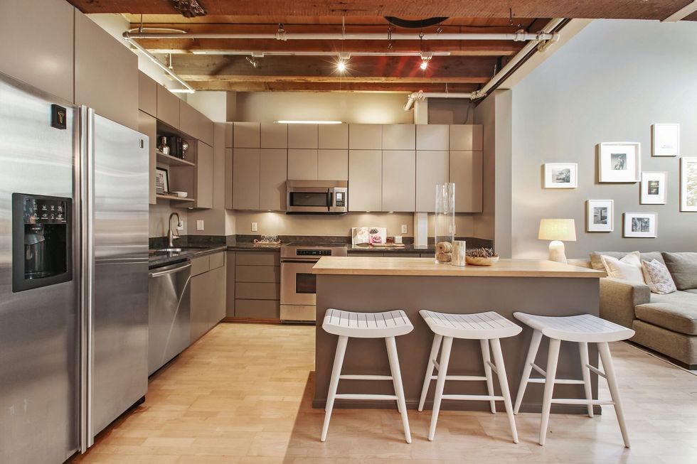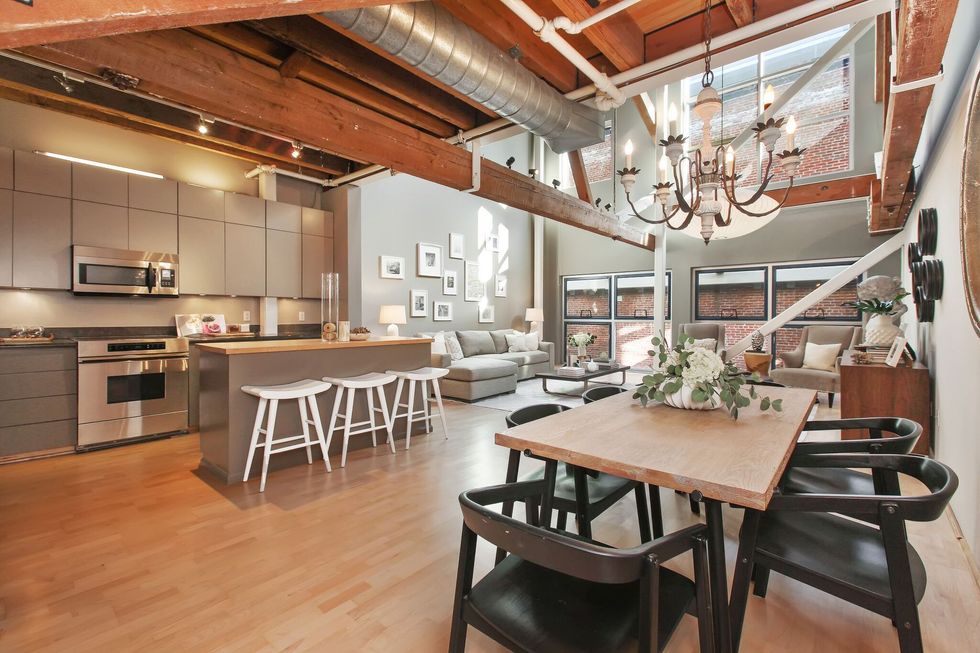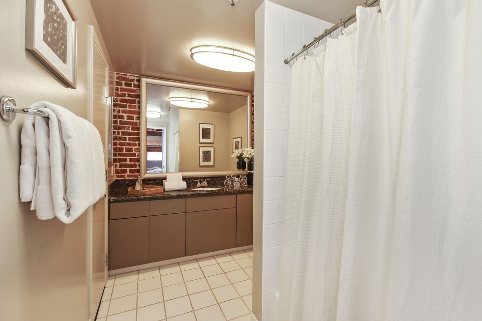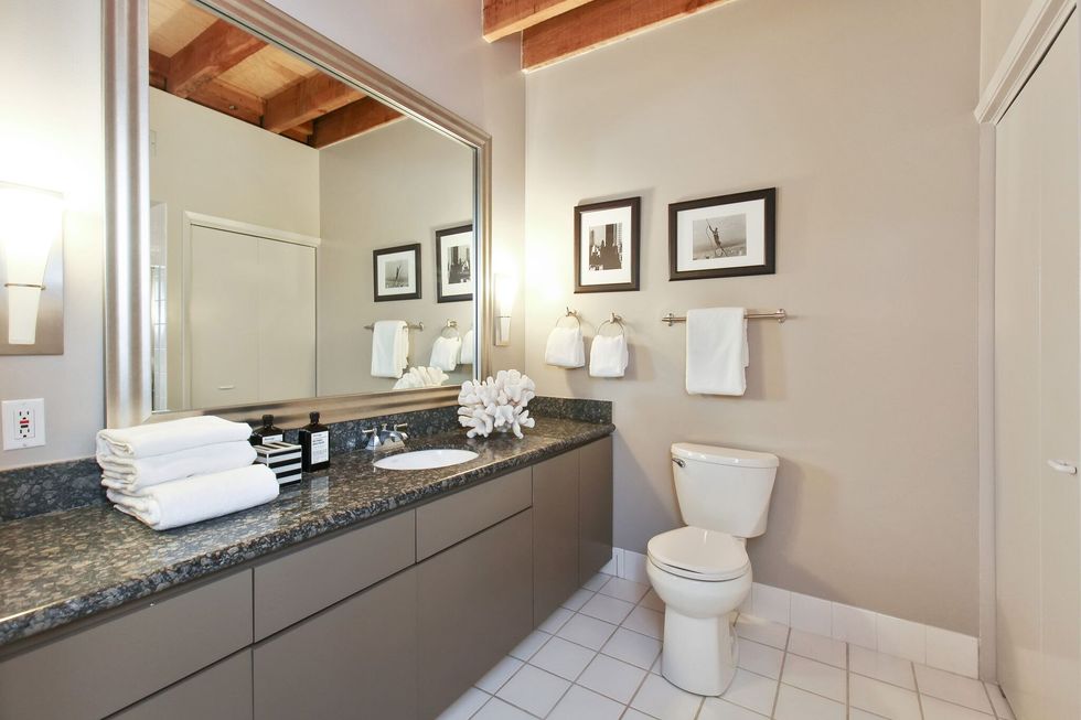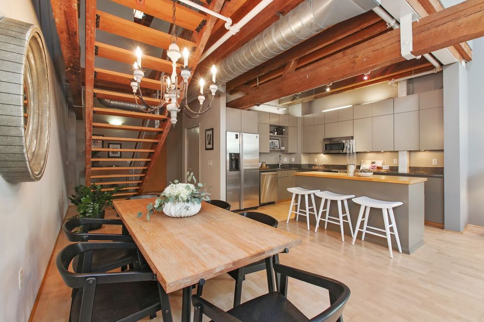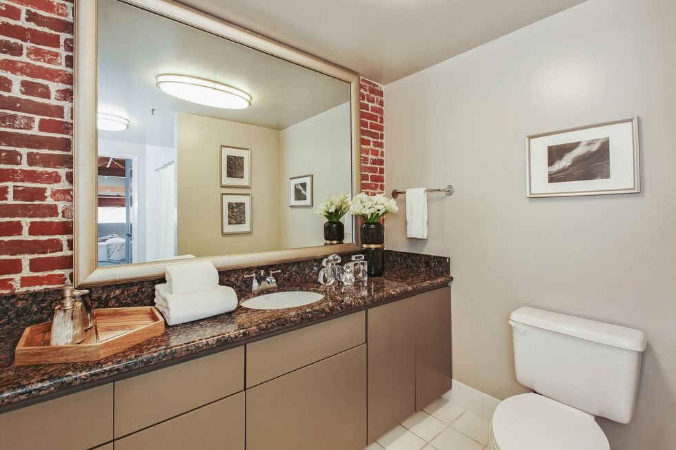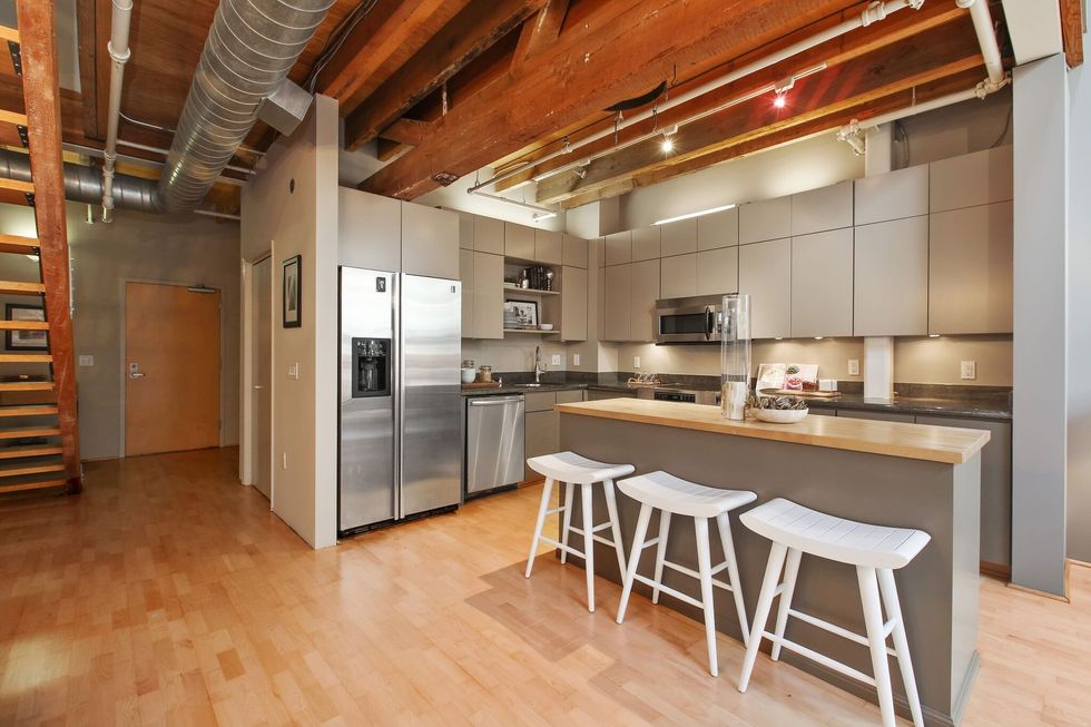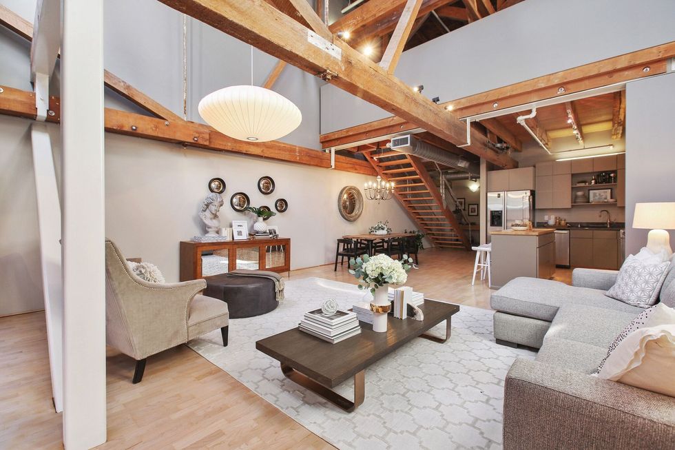 Just a block off the palm-lined Embarcadero and a Hunter Pence swing from AT&T Park, but tucked into the quiet enclave of Delancey Street and partially obscured by trees, the 66-loft building has an air of privacy and a vintage vibe, retaining many of the original qualities that give the warehouse so much character. Recently to hit the market, Loft 304 is all you'd expect from a converted industrial residence in SoMa: 20-foot ceilings, skylights, dramatic windows, hardwood floors, and, the highlight, original exposed brick and timber beams.