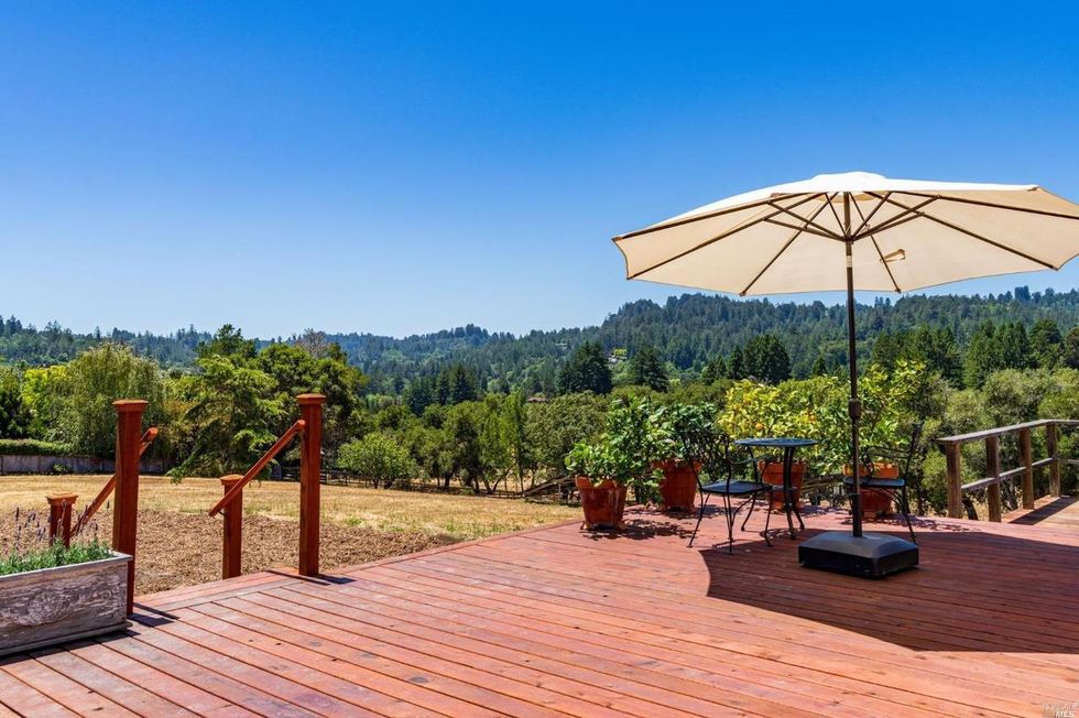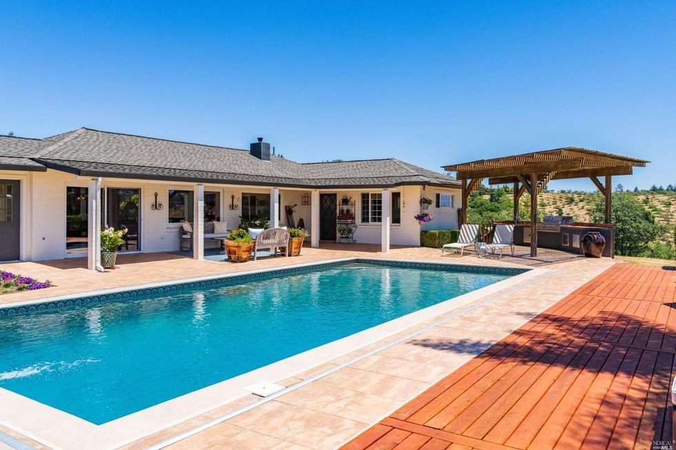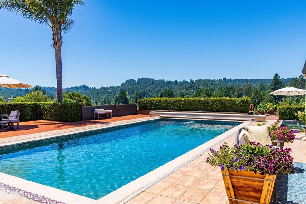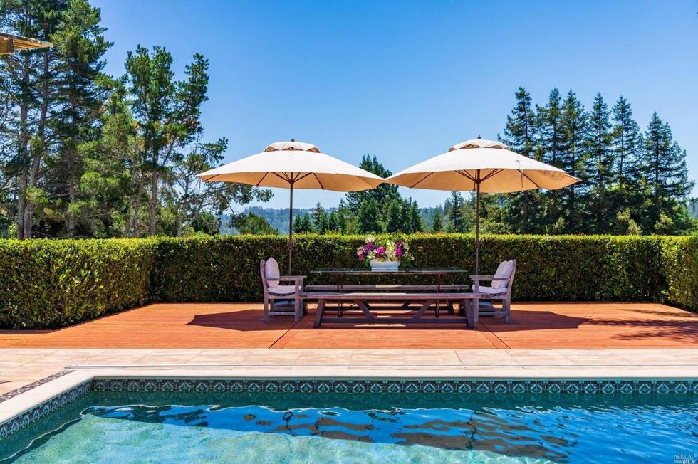Enjoy serene country living amid panoramic views of redwoods, apple orchards, and vineyards right from your swimming pool.