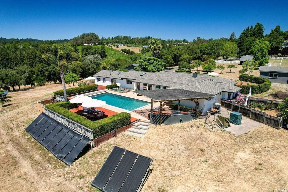 Also on the grounds are a workshop, tractor shed, art studio with 15-foot ceilings, and a three-car garage; and don't forget the recently renovated pebble tech pool. The house is even complete with solar for the home and pool as well as a generator.