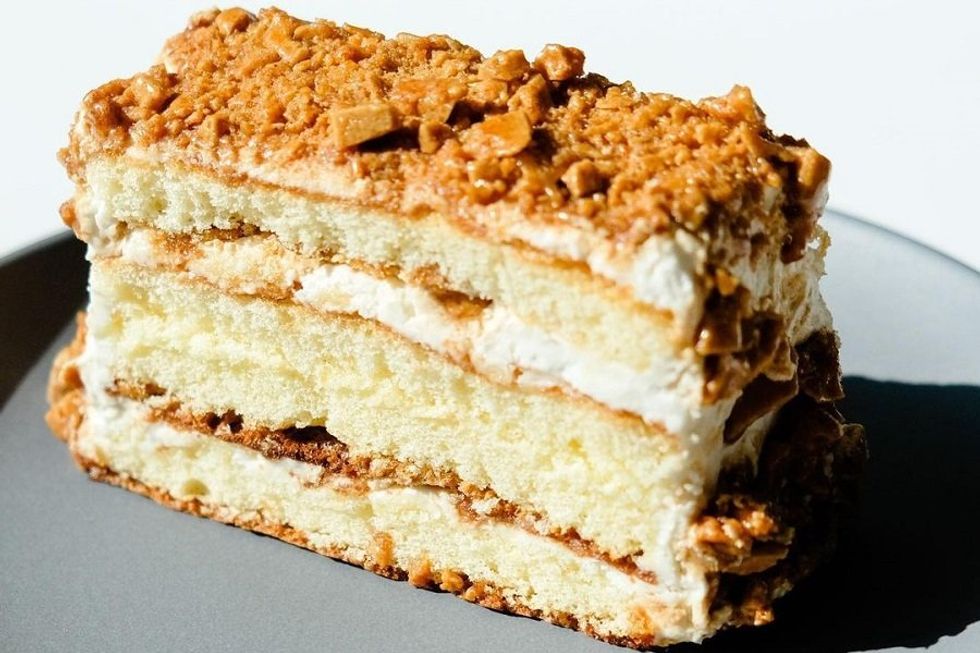 Yasukochi’s Sweet Stop, a family-owned bakery in Japantown, has been slinging its cakes, cookies, and pastries for 50 years. Everything from the matcha cake rolls to the butterhorns are delicious enough to have caught James Beard’s attention; Yasukochi’s was named a semi-finalist in the outstanding bakery category in 2023. But it is the coffee crunch cake, a light yellow cake layered with whipped cream and dusted with handmade coffee candy, for which the shop is especially known. Buy it by the slice or, take our advice and spring for an entire 9-inch cake. // 1790 Sutter St. (Japantown), sweetstopsf.com