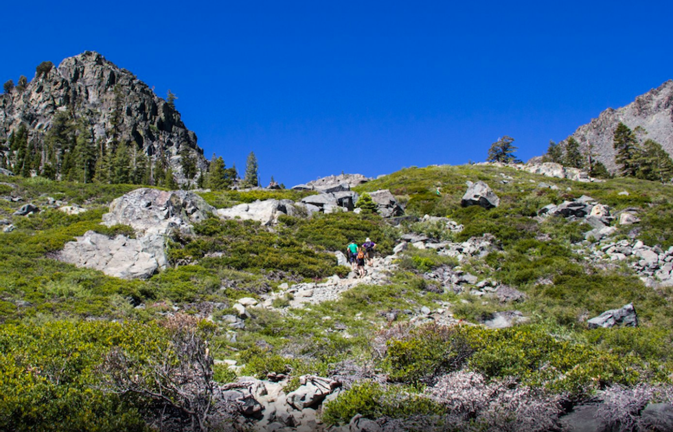 Tamarack Peak may not look too exciting considering its proximity to taller peaks in the area, including Mount Rose and Relay Peak, but this 6-mile loop that encircles the peak is one of the most spectacular hikes in the area. With less than 500 feet of elevation gain throughout the hike, you can rush through the round-trip in two or three hours. However, a slower pace is rewarded with incredible views of both Lake Tahoe, western Nevada, and a magnificent waterfall at the halfway point. Read more.