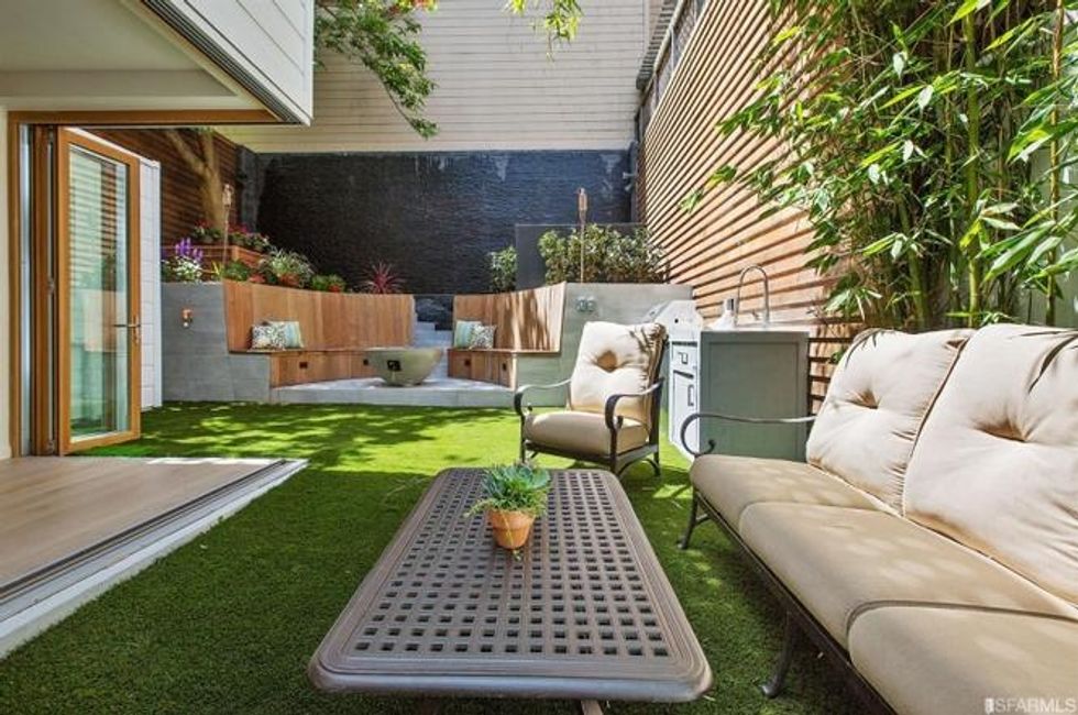 Spacious rooms throughout lend luxurious livable vibes. The entry level living area has bay seating and an eco-friendly fireplace, while the open kitchen (with two islands and stainless steel Thermador appliances) flows into the dining and great rooms; a lounge area at the back opens fully onto the garden and offers access to a mezzanine office with its own full bath. Just outside, an al fresco kitchen, semi-circular seating area, and fire pit guarantee you'll all be well fed and entertained as you chill in the spa among the bamboo and listen to the trickling of the 25-foot waterfall.
