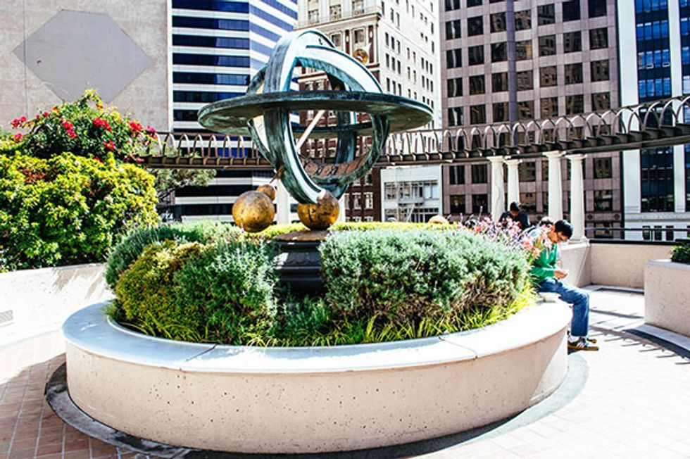 Embarcadero Center is home to many shops, offices, and a cinema, but you'll also find garden walkways above street level. Enter through the east or west entrances, take the stairs up to the second level to find yourself in a floating oasis with tables and chairs between trees, water fountains, and roses. The walkways stretch over three blocks and offer great views of FiDi buildings. // Open: At all hours