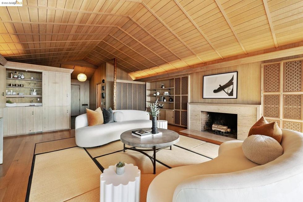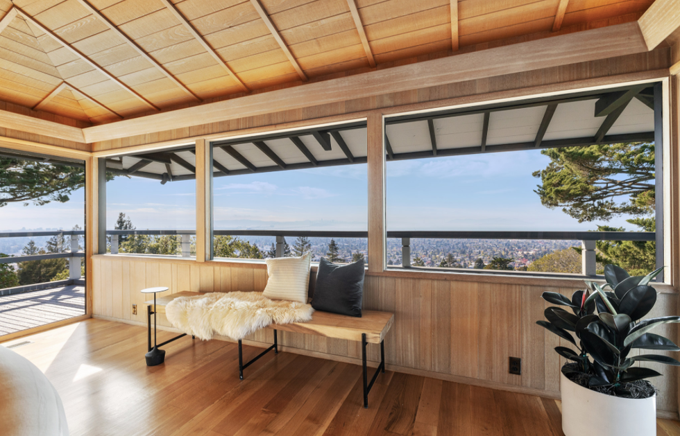 Number 14 Maybeck Twin Drive, though, was built by another local architect of the midcentury: Orinda-based modernist Robert Klemmedson, whose residential work differs from Maybeck's Arts and Crafts style by employing an Asian-inspired aesthetic. Both architects, however, imagined buildings that emphasized natural light and a connection to the surrounding land.