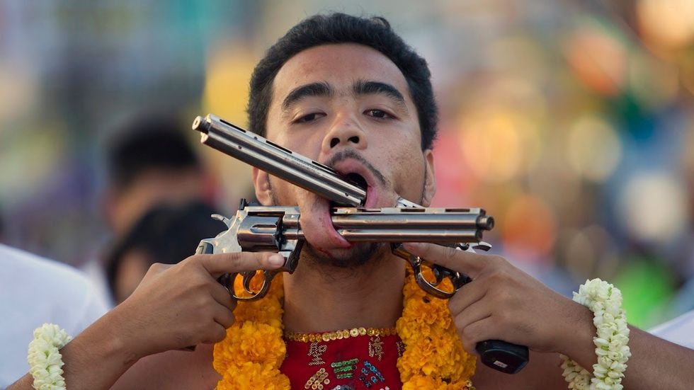 The name belies the true nature of this most macabre of festivals. Its rooted in a specific Chinese superstition that suffering and abstinence will lead to salvation. And, oh, how the participants suffer, where the devout pierce their skin in any number of elaborate and gruesome ways. Pins, needles, knives, swords—you name it—are stuck through the skin of participants (all under medical supervision), who then parade through the streets of Phuket to display their attempts at purity. The piercings are an attempt to invite Taoists to possess them as the climb into the spiritual plane. There is plenty of blood, so this one's not for the faint of heart. // September 2016: Phuket (Thailand); phuketvegetarian.com