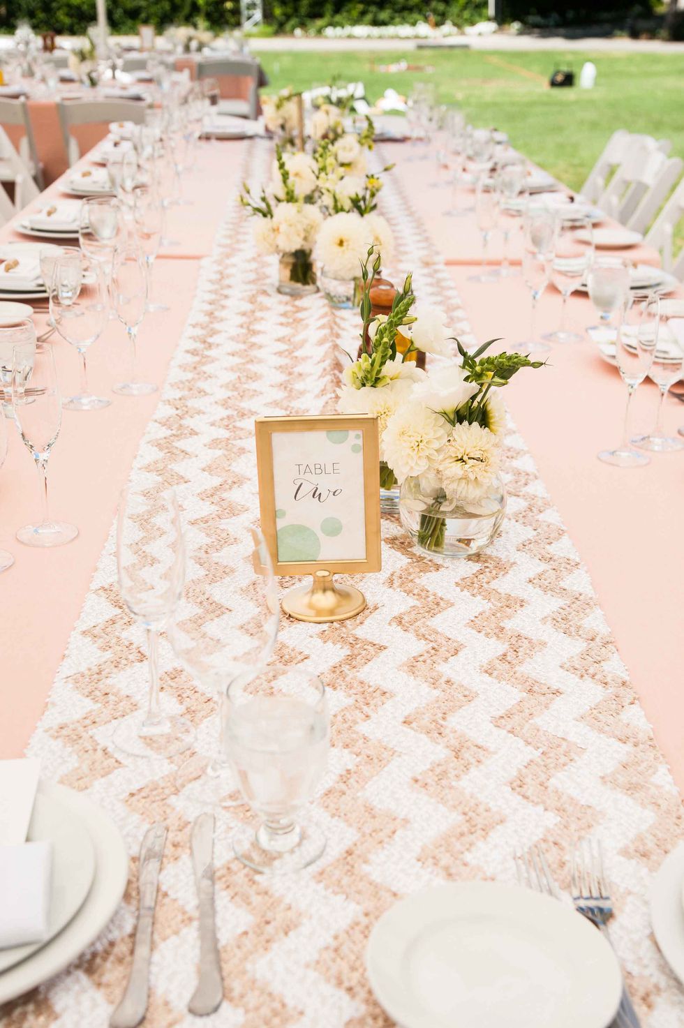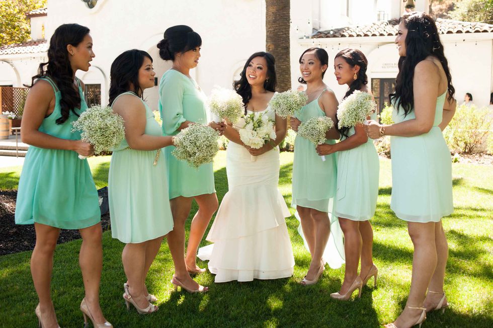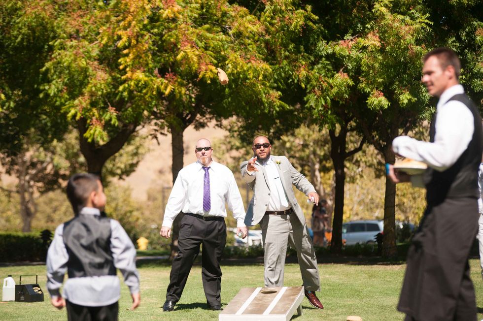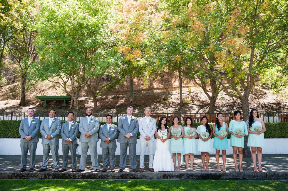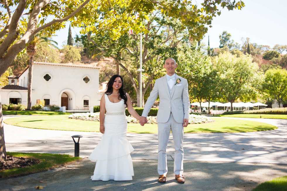 Their sunny Livermore wedding featured a simple and modern aesthetic. The couple opted for an afternoon soiree rather than an evening event since they wanted lots of sunshine during their big day. The entire wedding was outdoors on a beautiful lawn at Wente Vineyards. There were lawn games (croquet, cornhole, bocce ball) and a bubble machine for guests to enjoy during the reception.