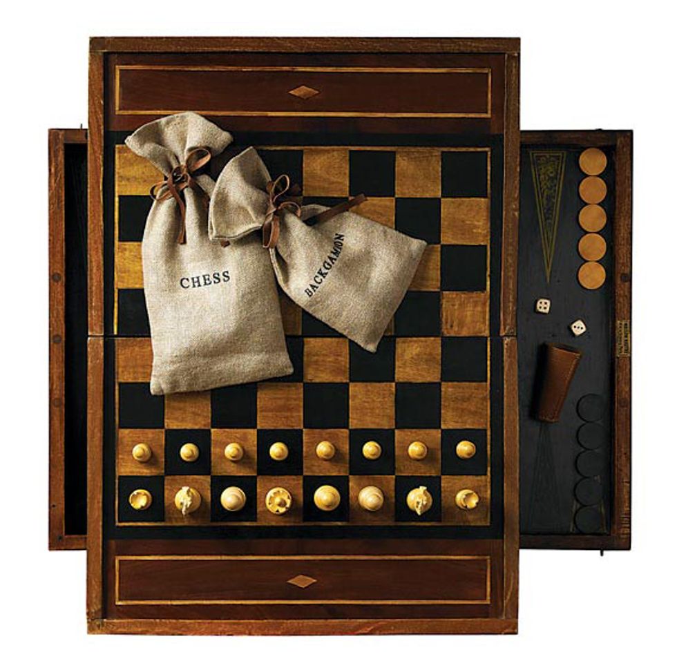 Get your brain in shape with Restoration Hardware’s French tournament edition backgammon and chess set. Good for an evening by the fireplace with a glass of eggnog, this handsomely antiqued set includes two classic games in one, with wooden pieces housed comfortably in delicate linen pouches.