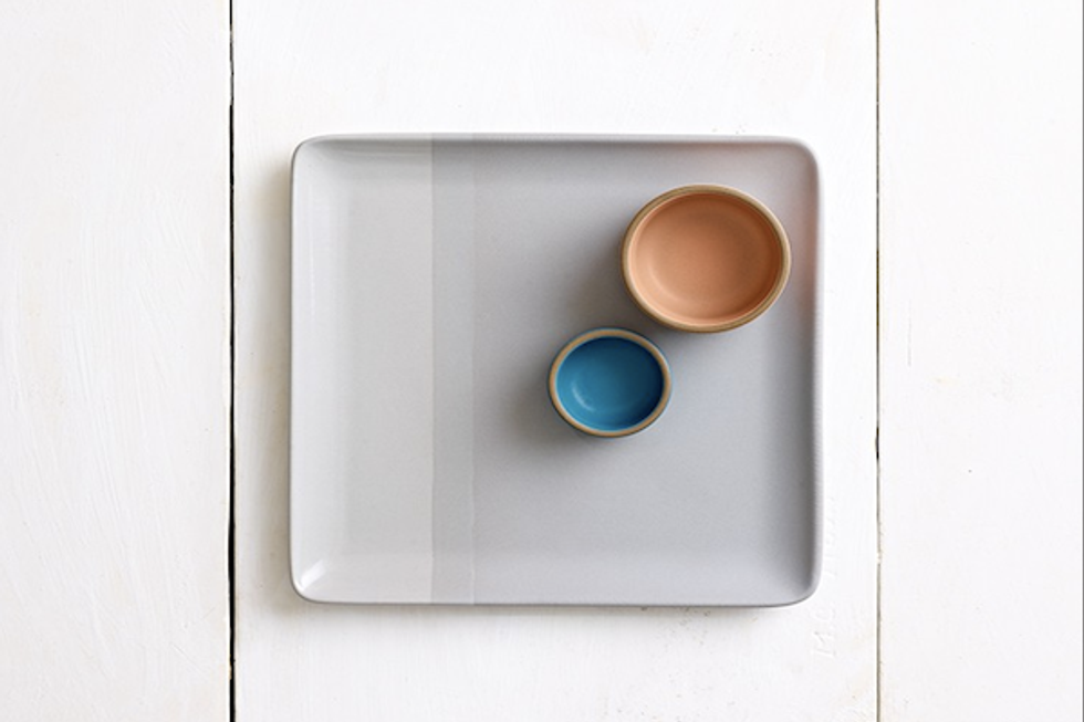Drawing inspiration from the mists that blanket the Northern California coast, Heath Ceramic’s serving set pair two bowls together with their 12 x 12 platter featuring Storm and Stinson Grey colors, in matte and glossy, respectively. Perfect for serving with McEvoy olives, tapanade, and homemade crackers or, better yet, if it’s just for you, a spread of Rolos, Goldfish crackers, and Nutella-topped crostini. // Heath Serving Set Seasonal Collection, $103, heathceramics.com