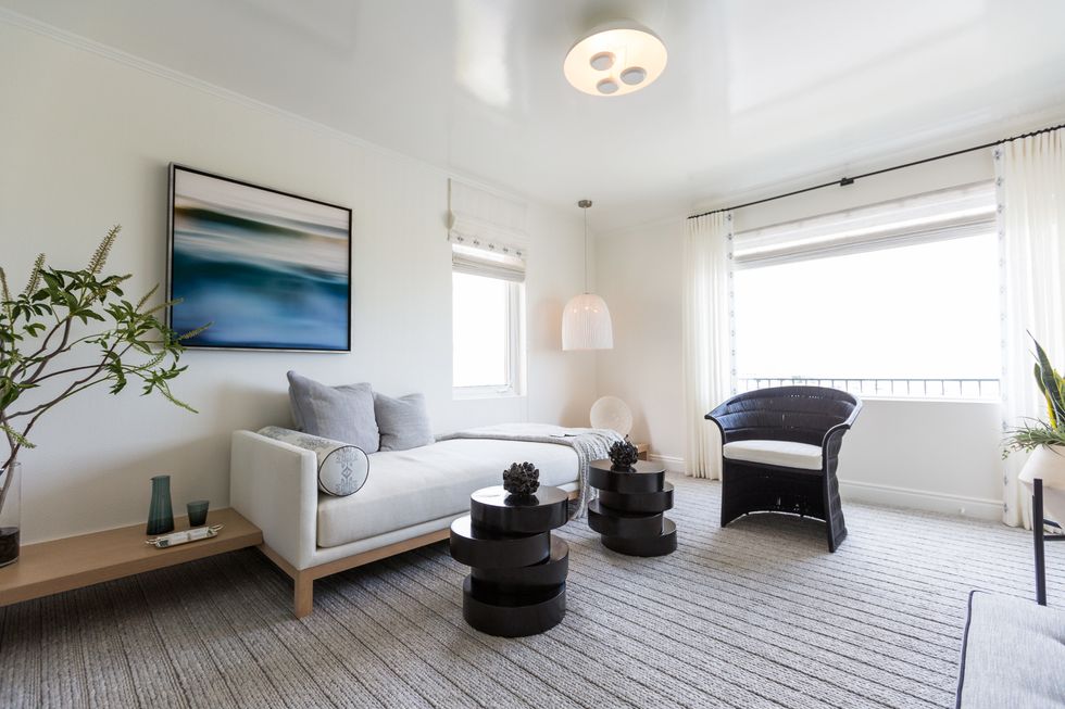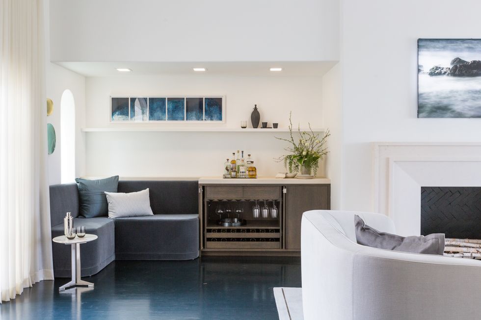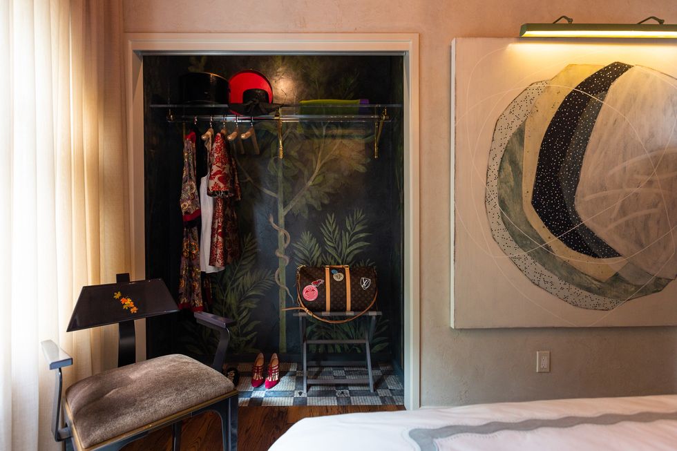Built by the architect George McCrea, the home now brims with decor as thoughtful and stunning as its expansive views of the Golden Gate Bridge and SF Bay. Announced by the aforementioned exterior painting by Seattle native turned SF local AJ Oishi, in collaboration with Simon Breitbard Fine Arts, each of its rooms pops with a unique theme and a name to match.