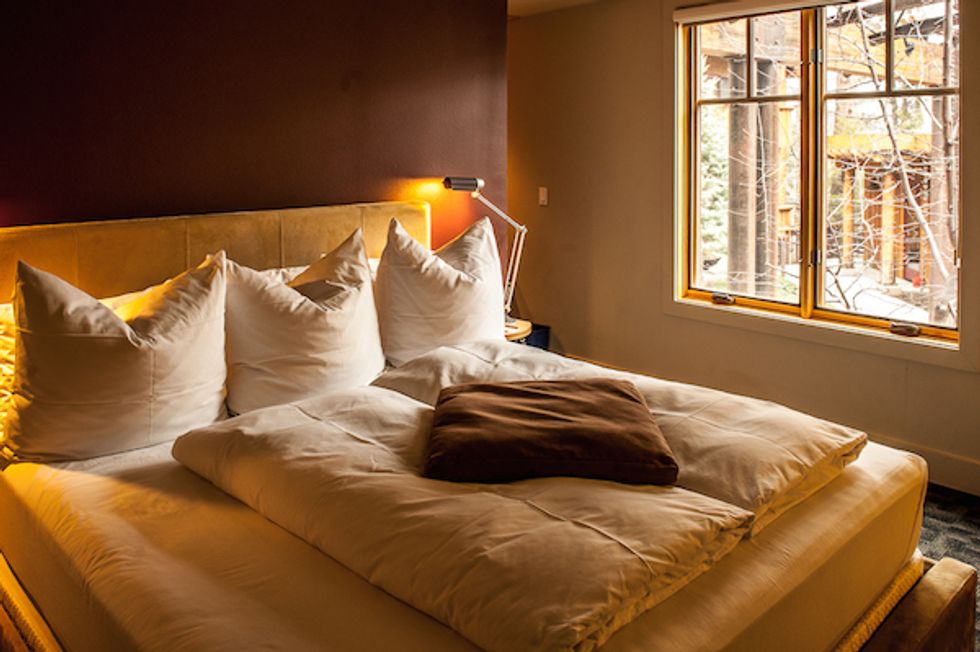 You and your date may both partake in wine pairings since there's no driving required: You can crash for the night at the pet-friendly Cedar House Sport Hotel—a 10-year-old modern-minimalist stay that feels like Ikea in the mountains. But, if you have any hope of getting cozy in bed with your S.O. later, call before dinner to request a king duvet: The beds here come sans top sheet and with a duo of twin size duvets that barely cover the mattress' surface—which might be great if you're planning to sleep alone with your dog. The hotel's owner, Patty Baird, is little bit tut tut about how this is très European. Call us American—we like to cuddle.
