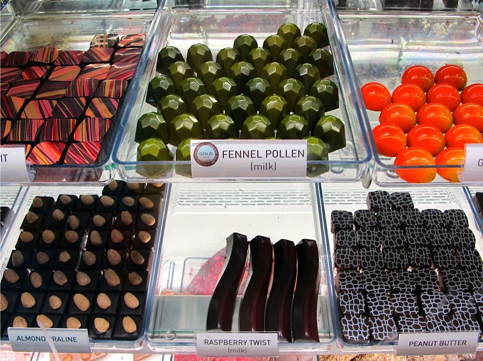 Tucked away in the V Marketplace in Yountville is this artisan chocolate maker that is just a year old—you can watch the husband (Chris Kollar) make his exquisite chocolates behind a glass window while his sweet Swiss wife rings you up. Be sure to try the fennel pollen.