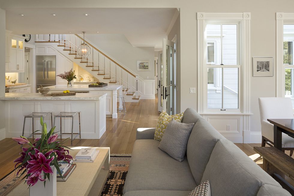 In fact, Sharkey's finished home is a beautiful example of flexibility, easily marrying the whimsical scalloped shingles and très élégant crown molding of the original Victorian style with modern, fully livable interiors.