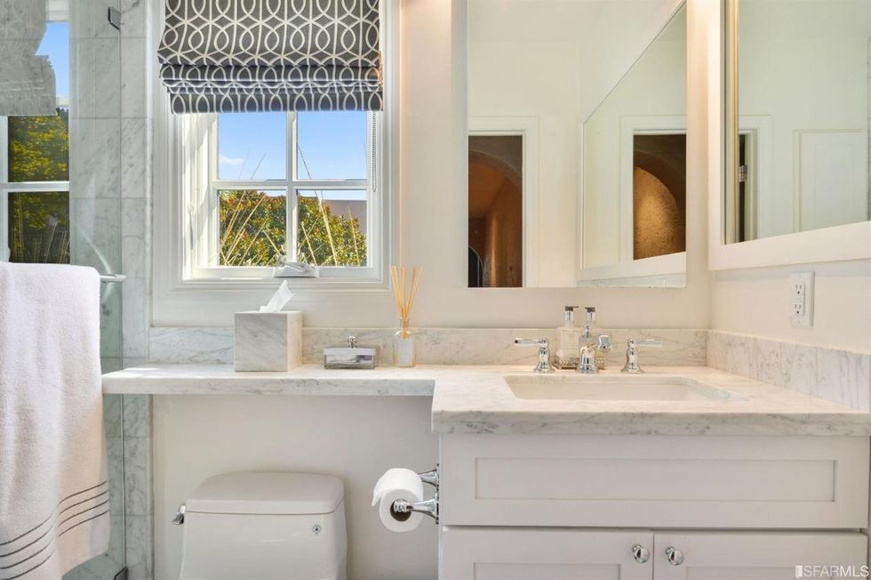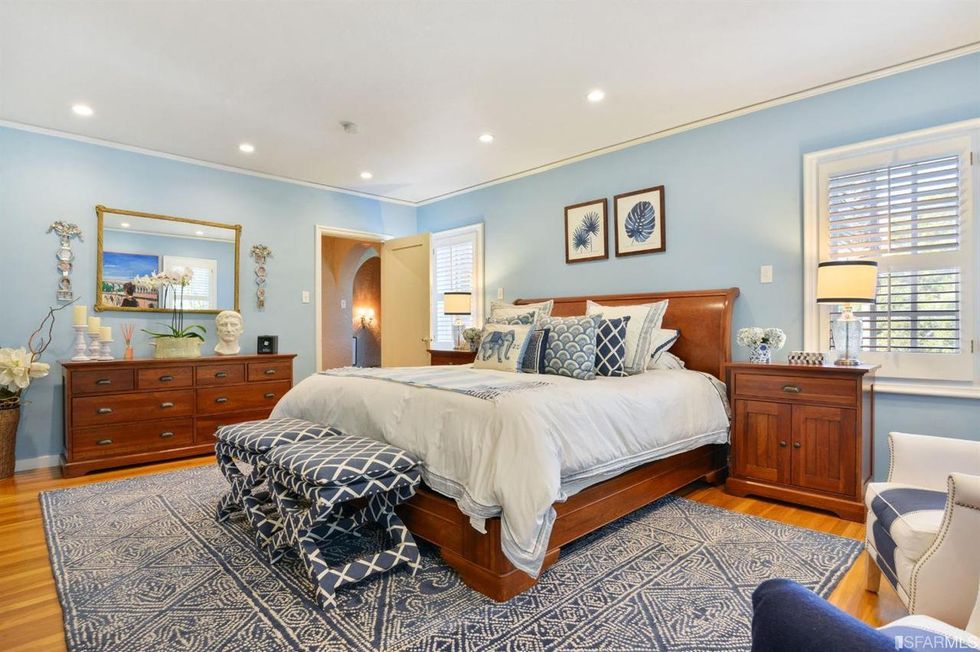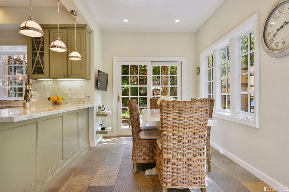 On the main floor, French doors open from the family room onto the patio. The remodeled eat-in kitchen and small dining area have picture windows on all sides. Cloaked in Venetian plaster, the large dining room has recessed lighting as well as a chandelier. An en-suite guest bedroom, necessary for a home built to host gatherings, finishes out this floor.