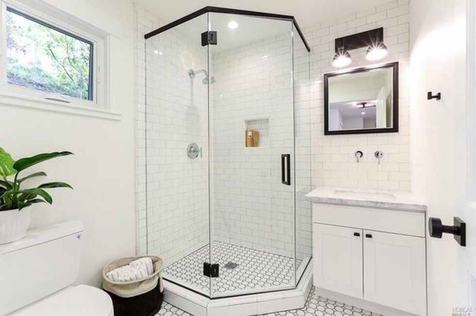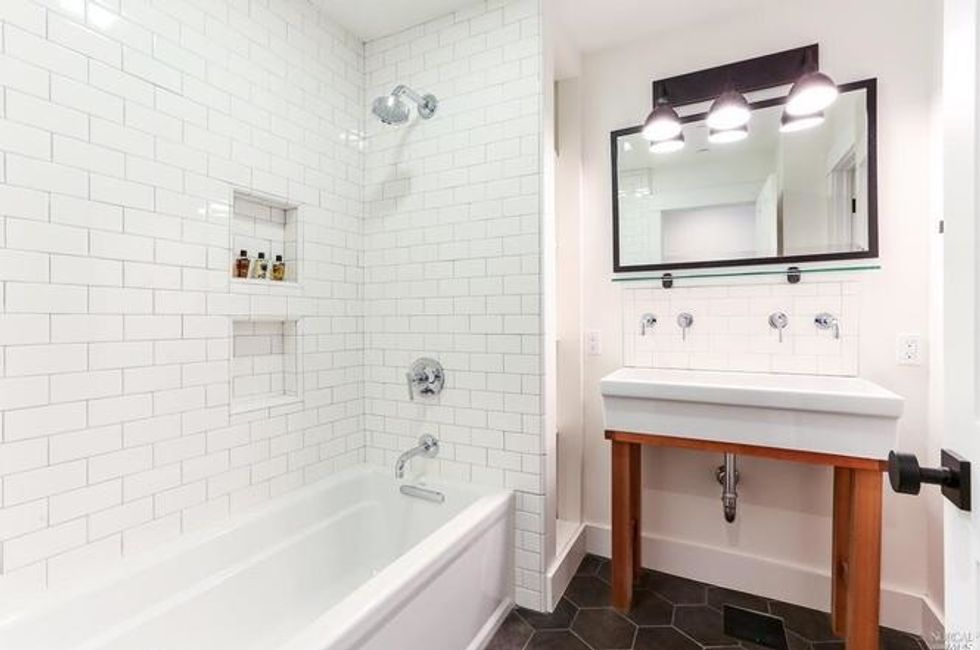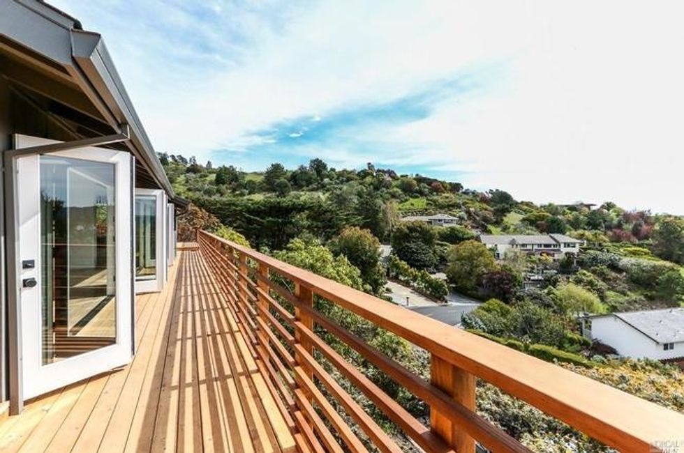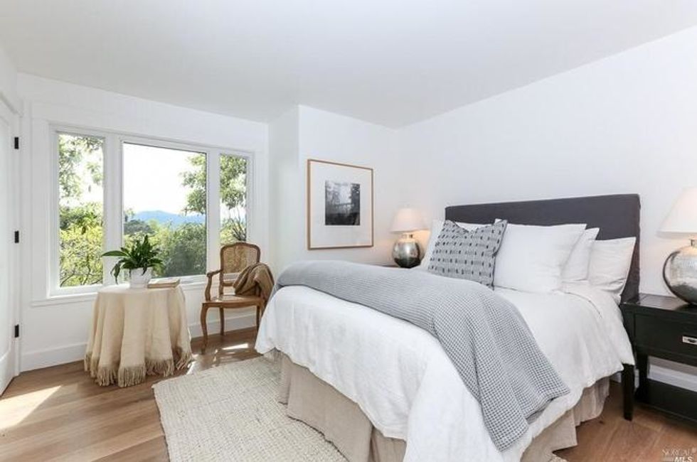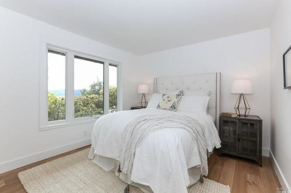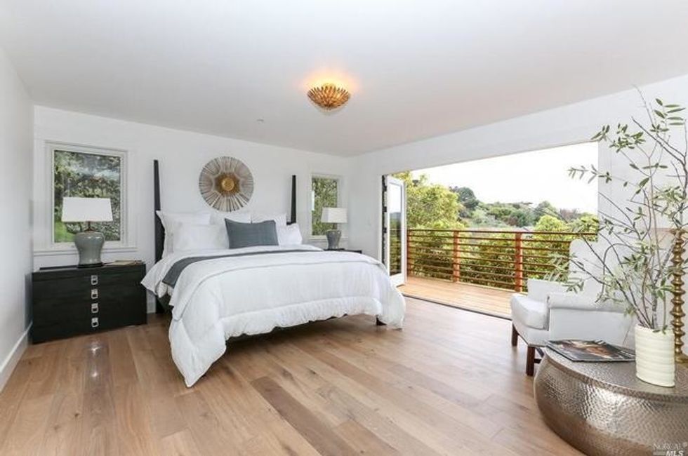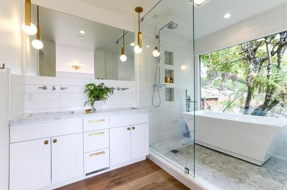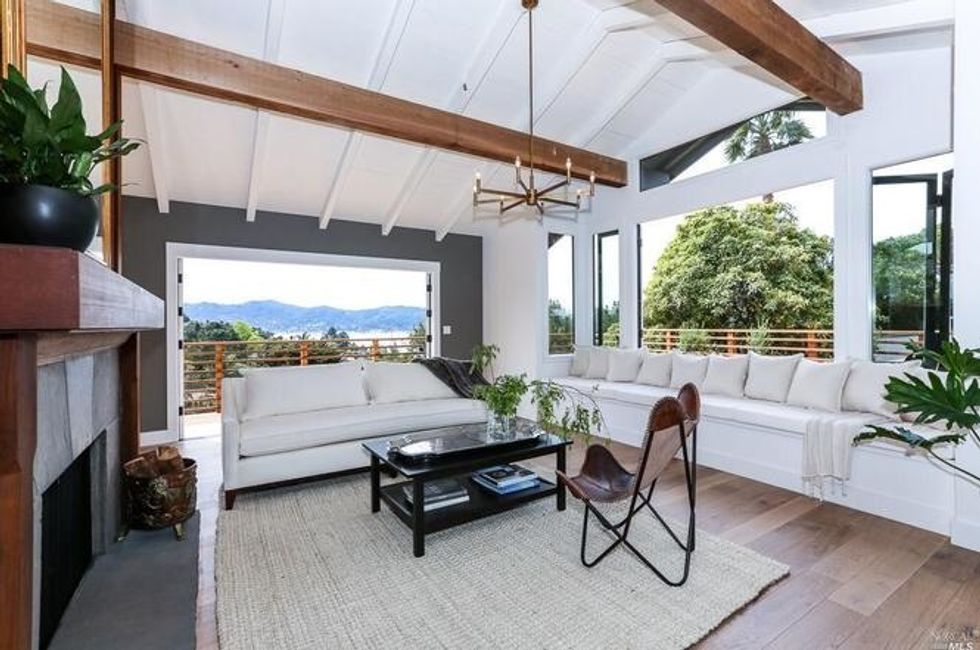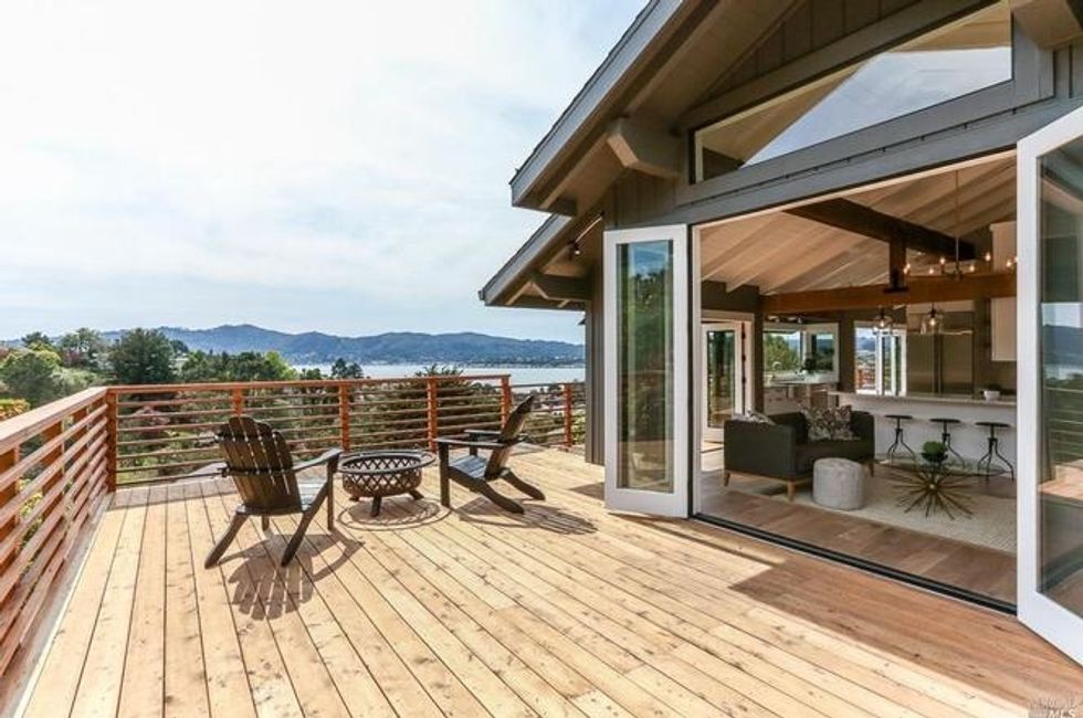 Soak in the tub while enjoying the sunset and lush landscape in this Tiburon home overlooking the bay.