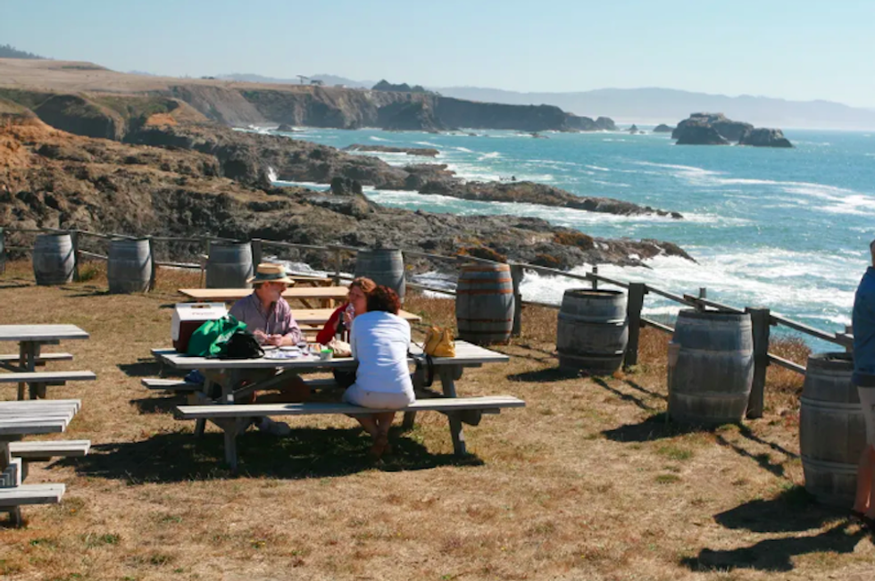 Pacific Star Winery is 12 miles north of Fort Bragg on the Mendocino Coast, just far enough off the beaten path that many folks don't discover it. But it's on the map for more reasons than interesting wines like charbono, brunello, and Dad's Daily Red. There are whales to be spotted, too! The expansive bluffside picnic grounds overlooking the coast have big ocean views.