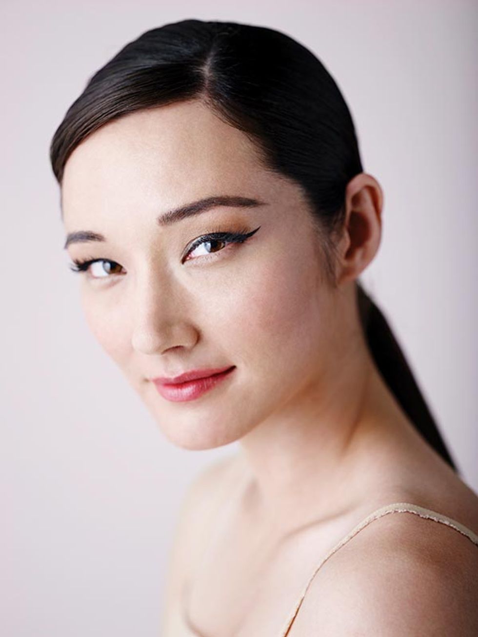Christensen’s makeup kit is always loaded with lashes. “False eyelashes are one of the best ways to play up your eyes,” she says. Using a tweezer, Christensen applies four to five individual lashes starting at the outer corner of the eye, working inward along the lash line, stopping at the center. To pump up the drama, channel Marilyn Monroe in her pin-up heyday with a brave, liquid-liner cat eye.